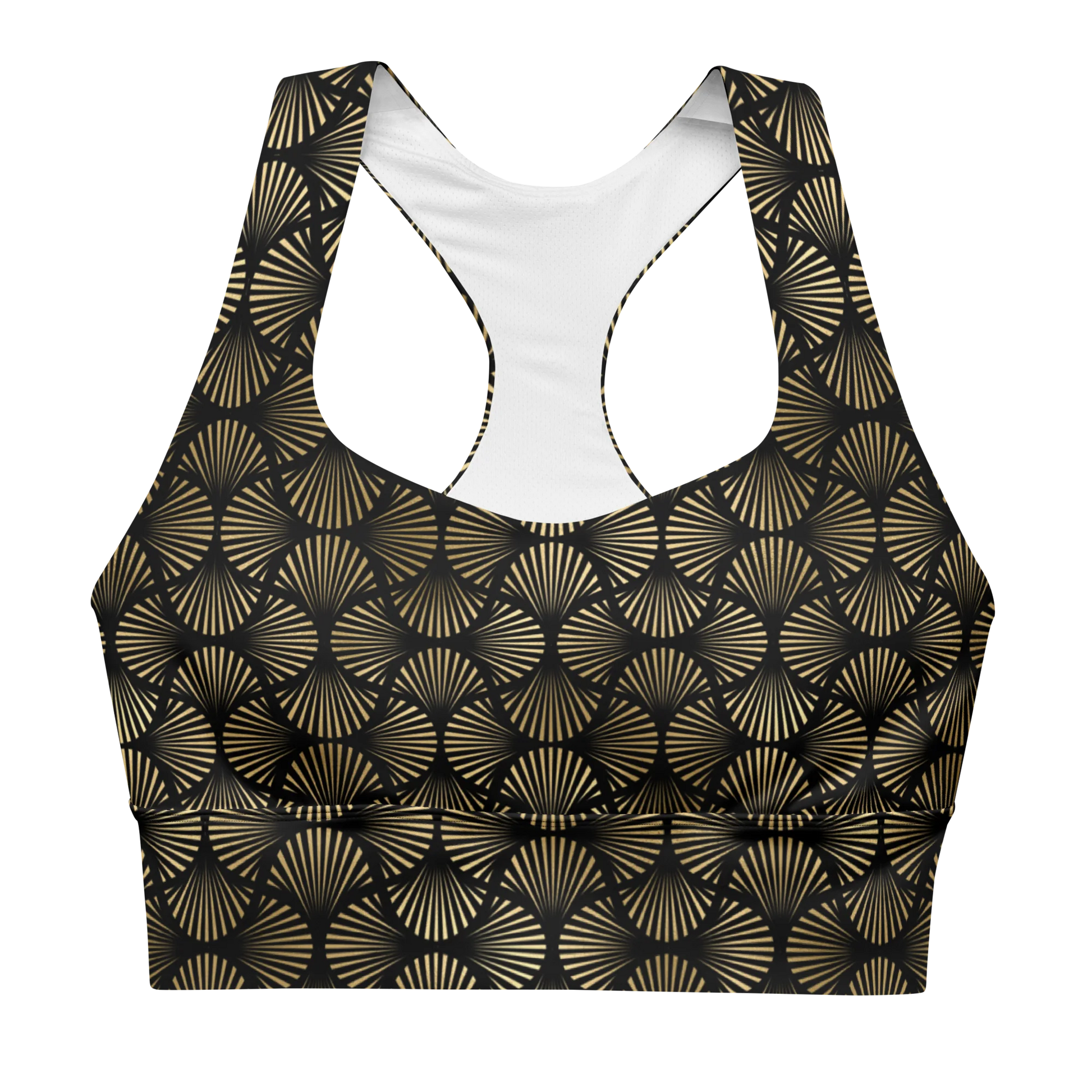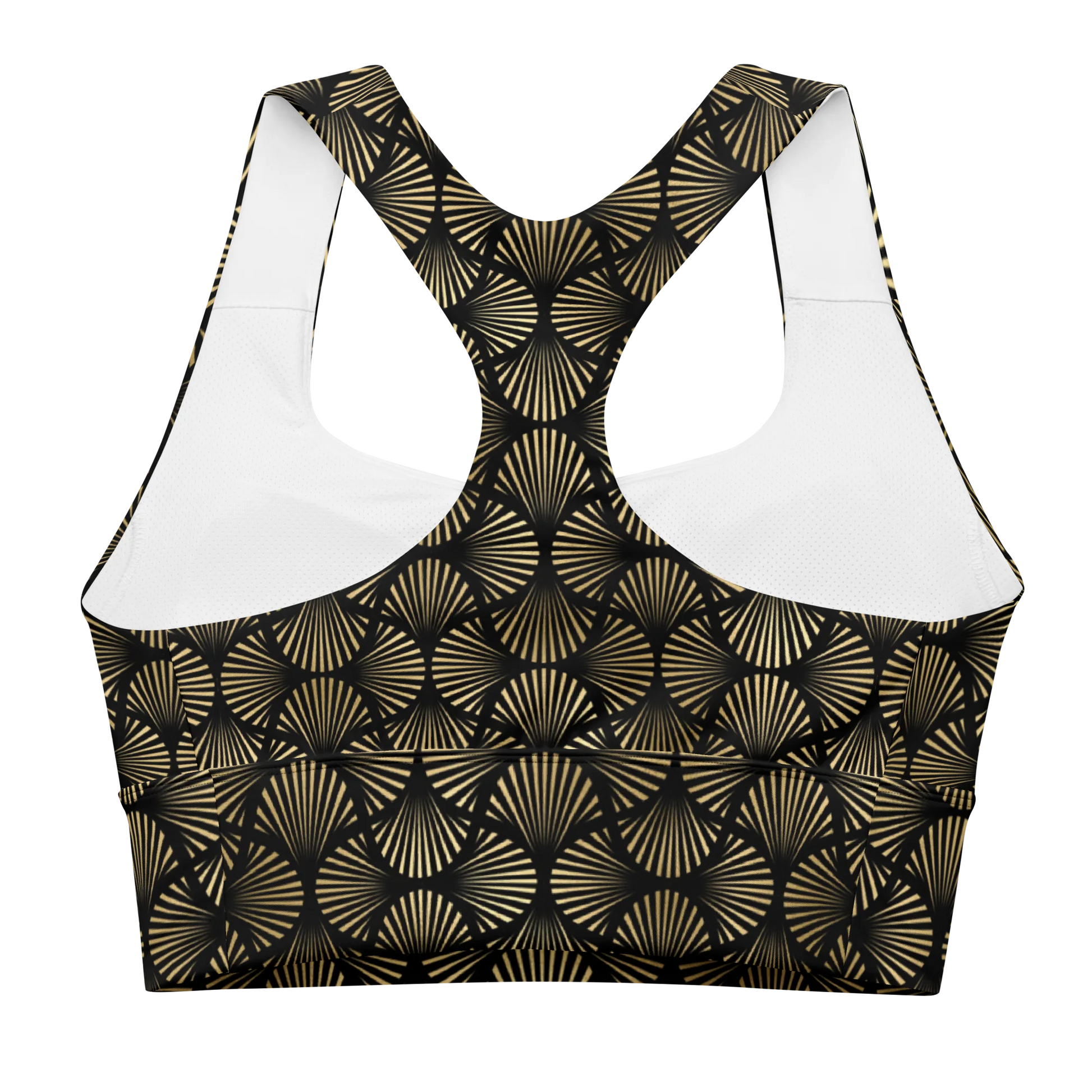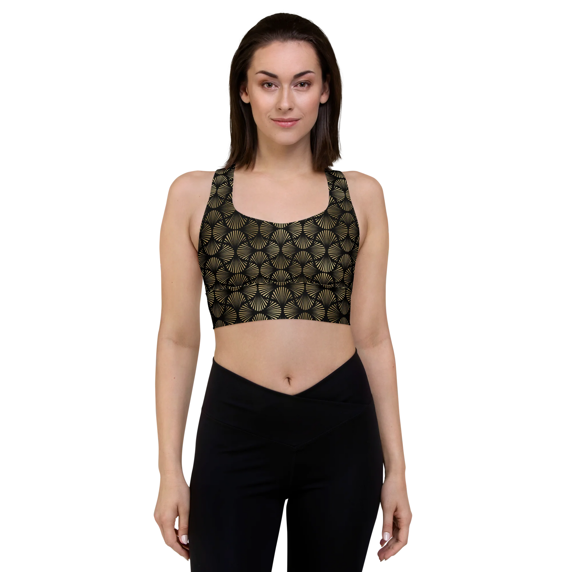 Black And Gold Art Deco Flower Reflections Longline Sports Bra