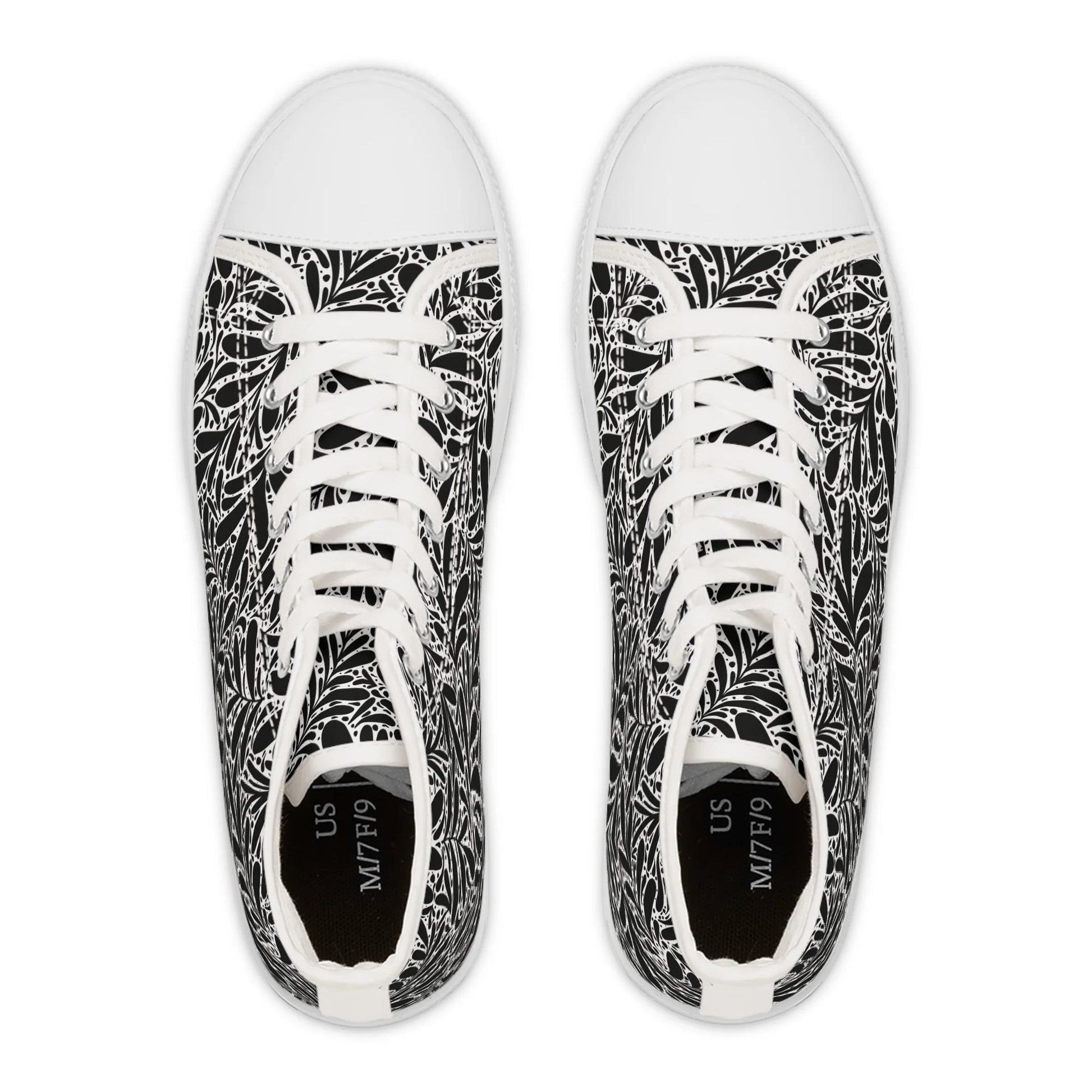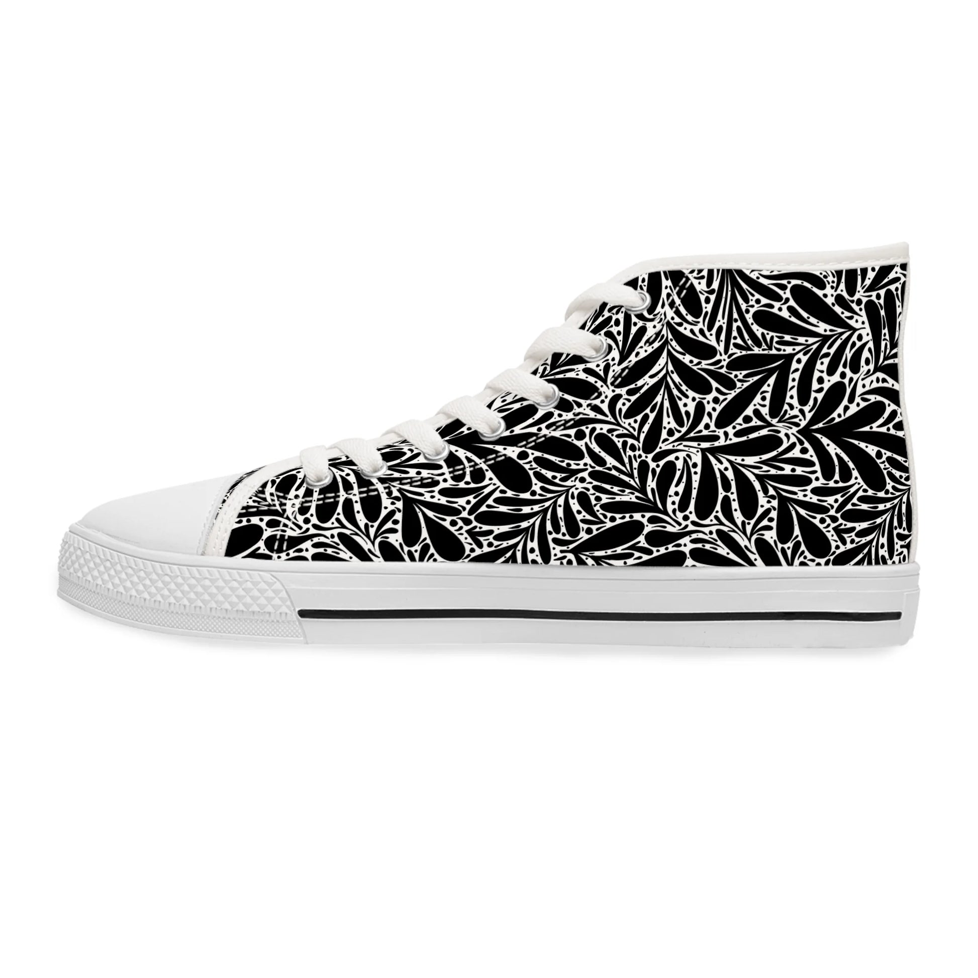 Elevate your shoe game with our Black Leafy Luxury High Top Sneakers! Made with breathable polyester canvas and hi-poly deodorant memory foam insoles, these designer fashion sneakers are perfect for any urban fashionista. Experience style and comfort in one shoe.