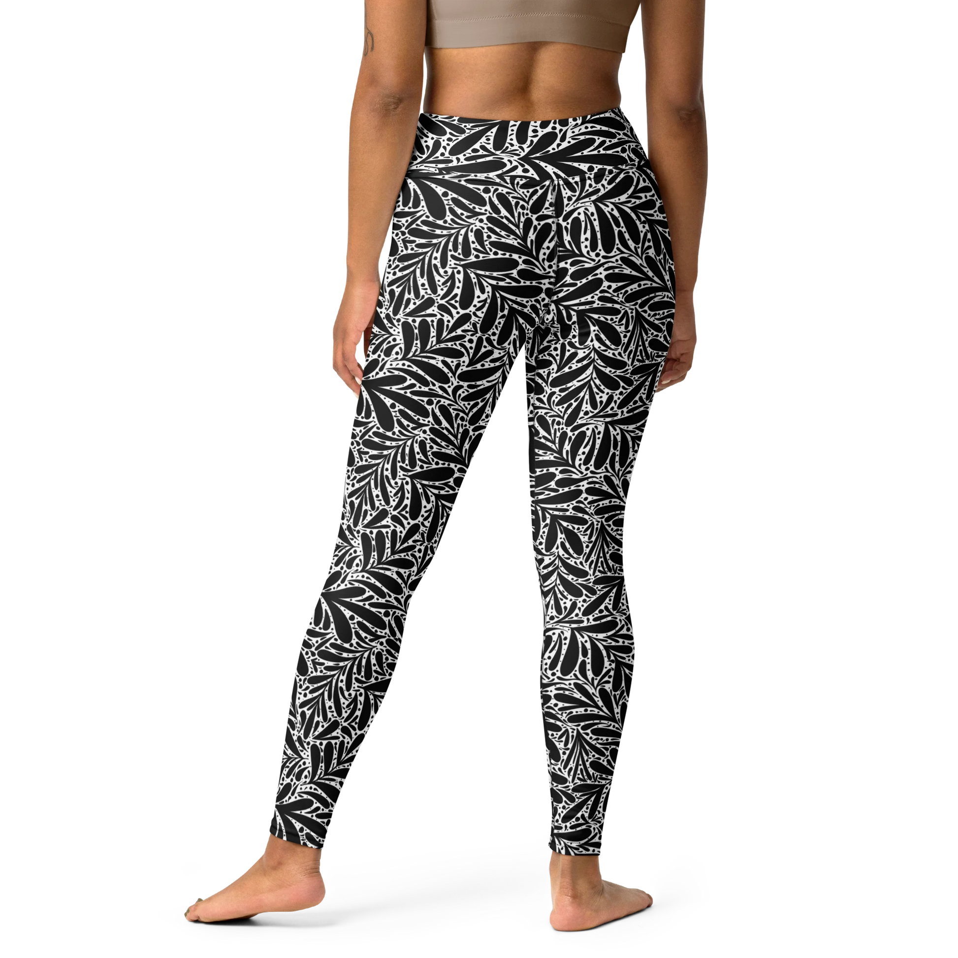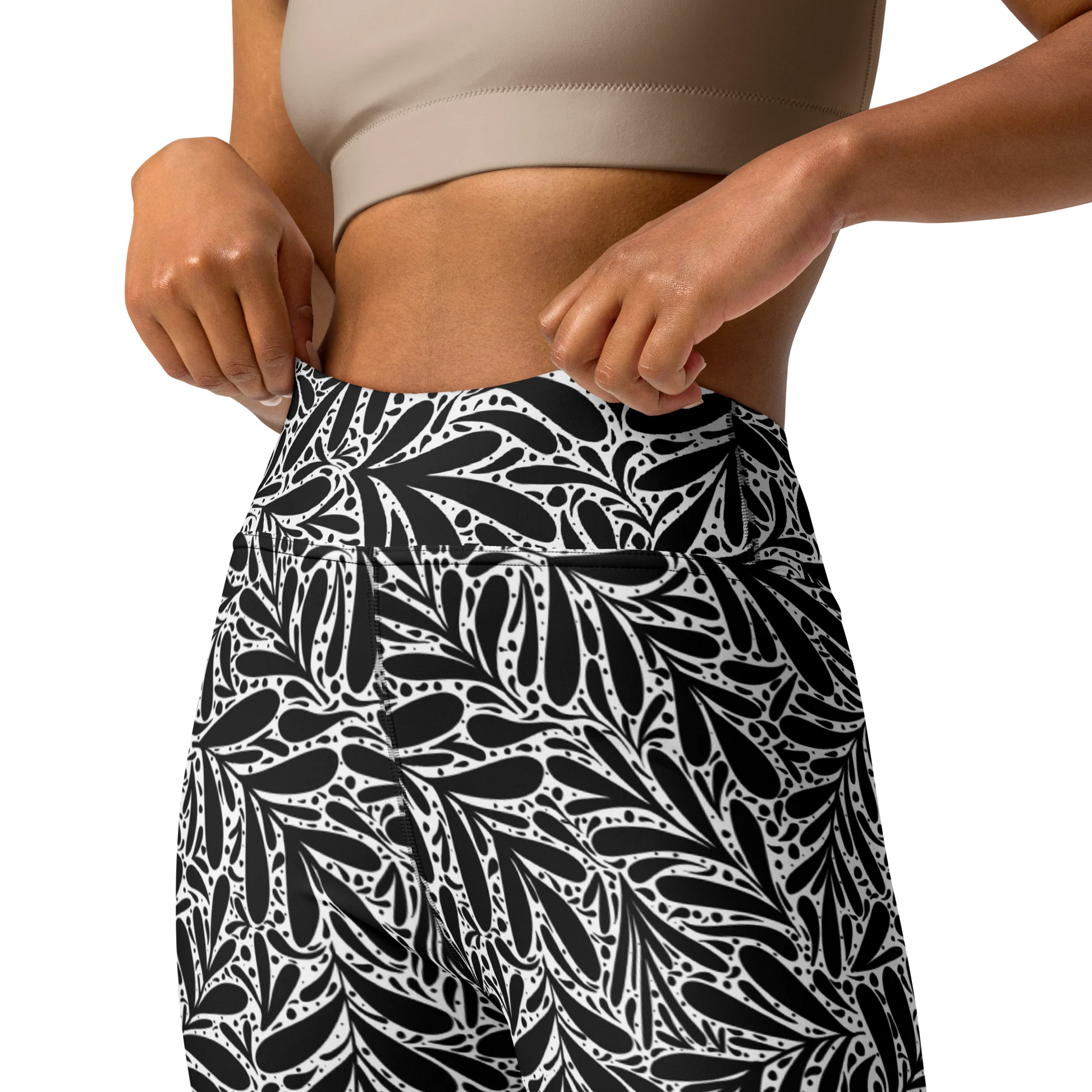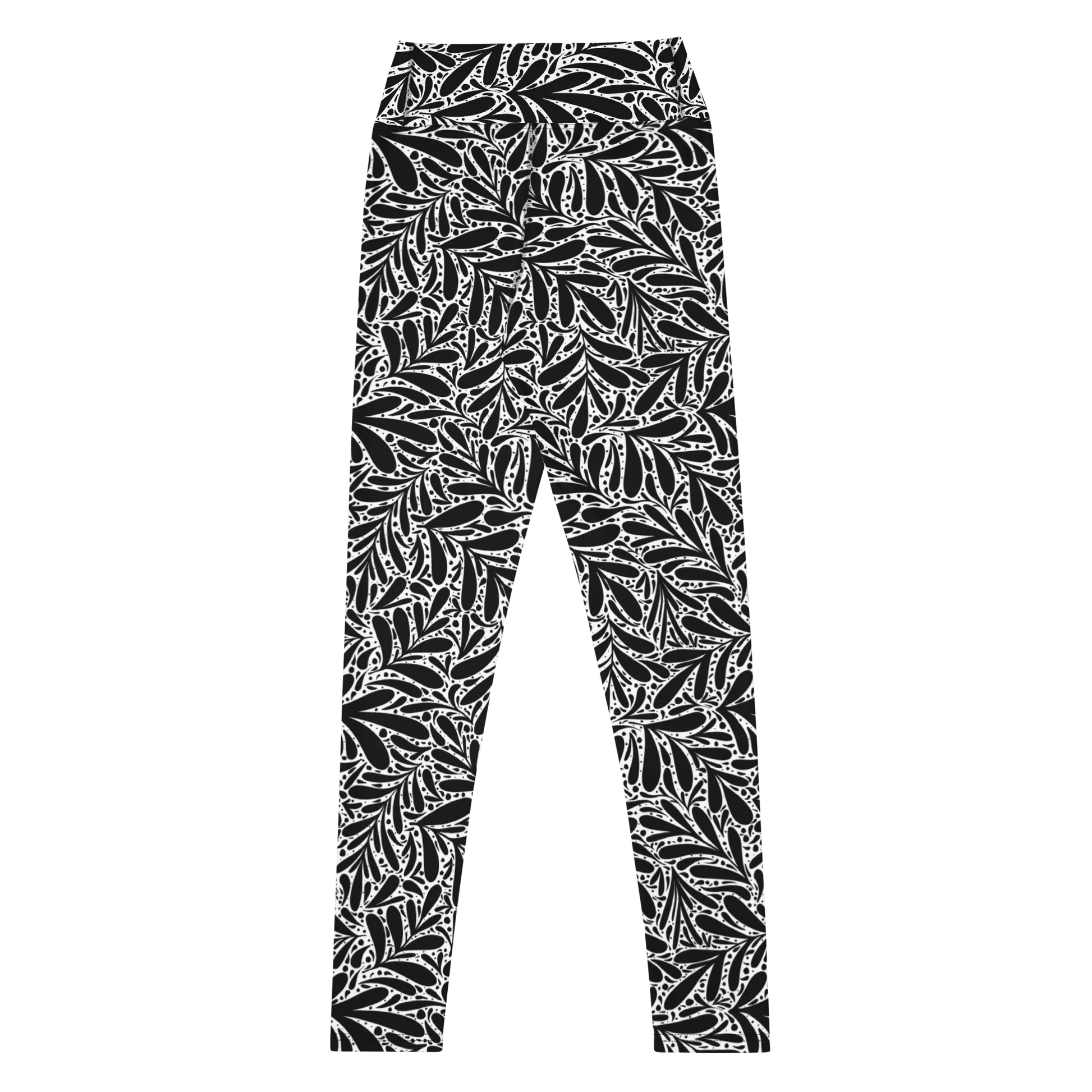 Elevate your look with Black Leafy Luxury Yoga Leggings. Chic design meets comfort for a sophisticated style.