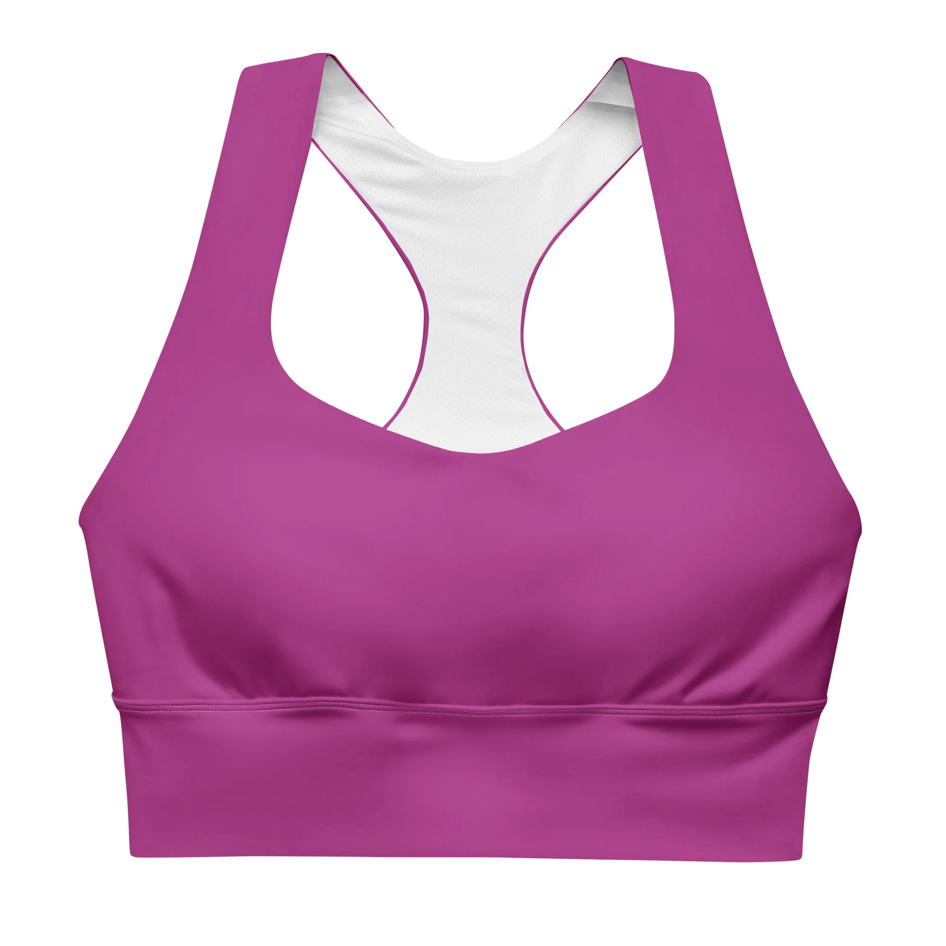 Elevate your workouts with the Blooming Violet Basic Longline Sports Bra. This sports bra offers the perfect combination of comfort and style, with features like a built-in underbust band and mesh panel details for breathability. Get yours now and take your fitness routine to the next level.