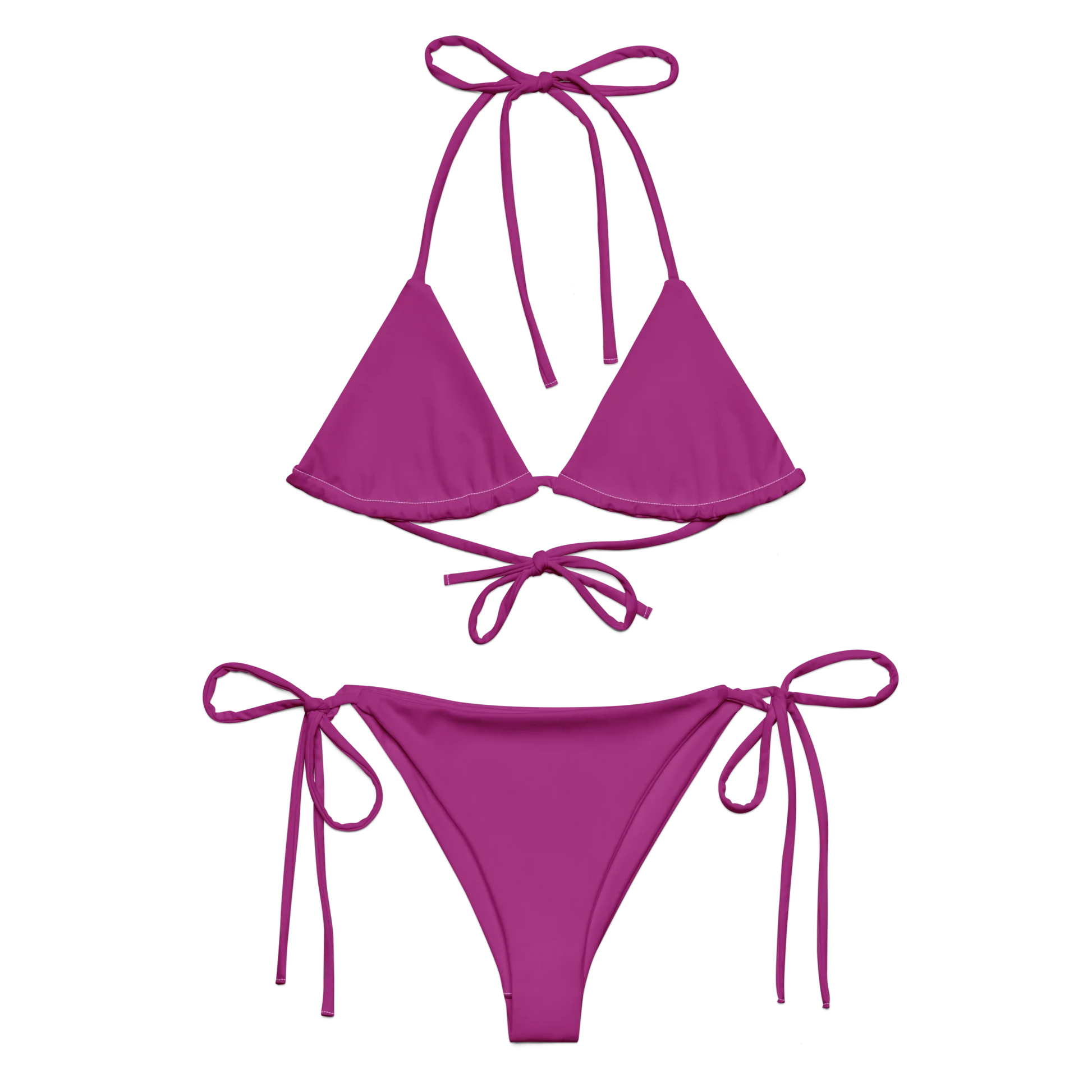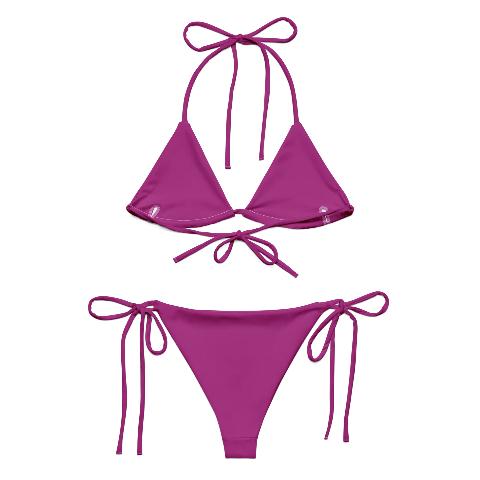 Experience guilt-free sunbathing with the Blooming Violet Basic Recycled String Bikini. The classic design is crafted from environmentally-friendly fabrics, offering a sophisticated, sustainable swimwear option. Enjoy a luxurious, carefree day at the beach in this timeless piece.