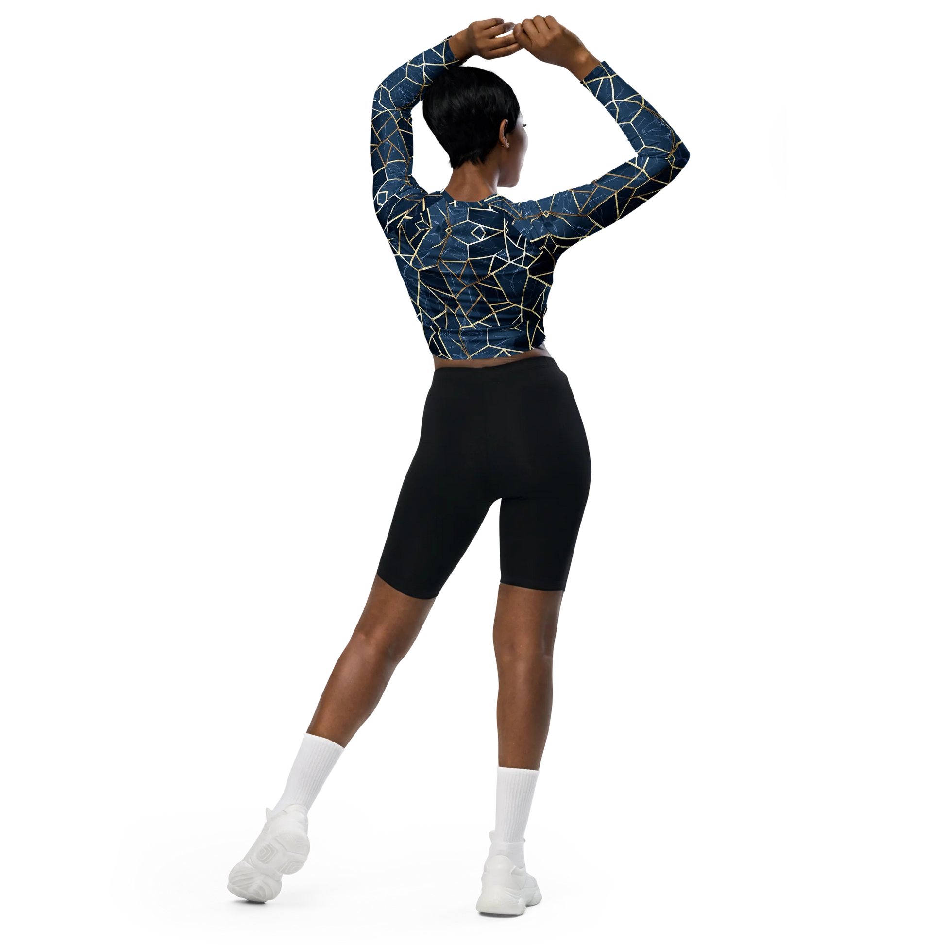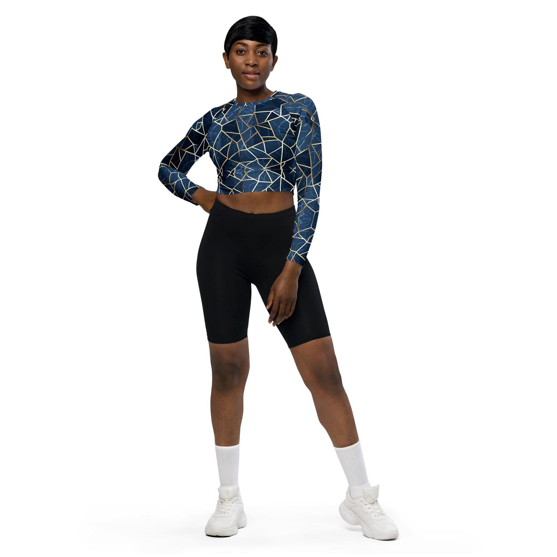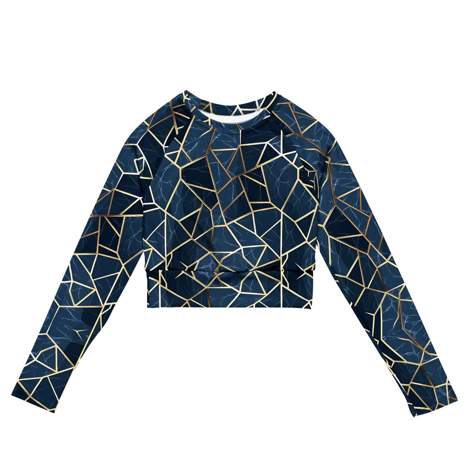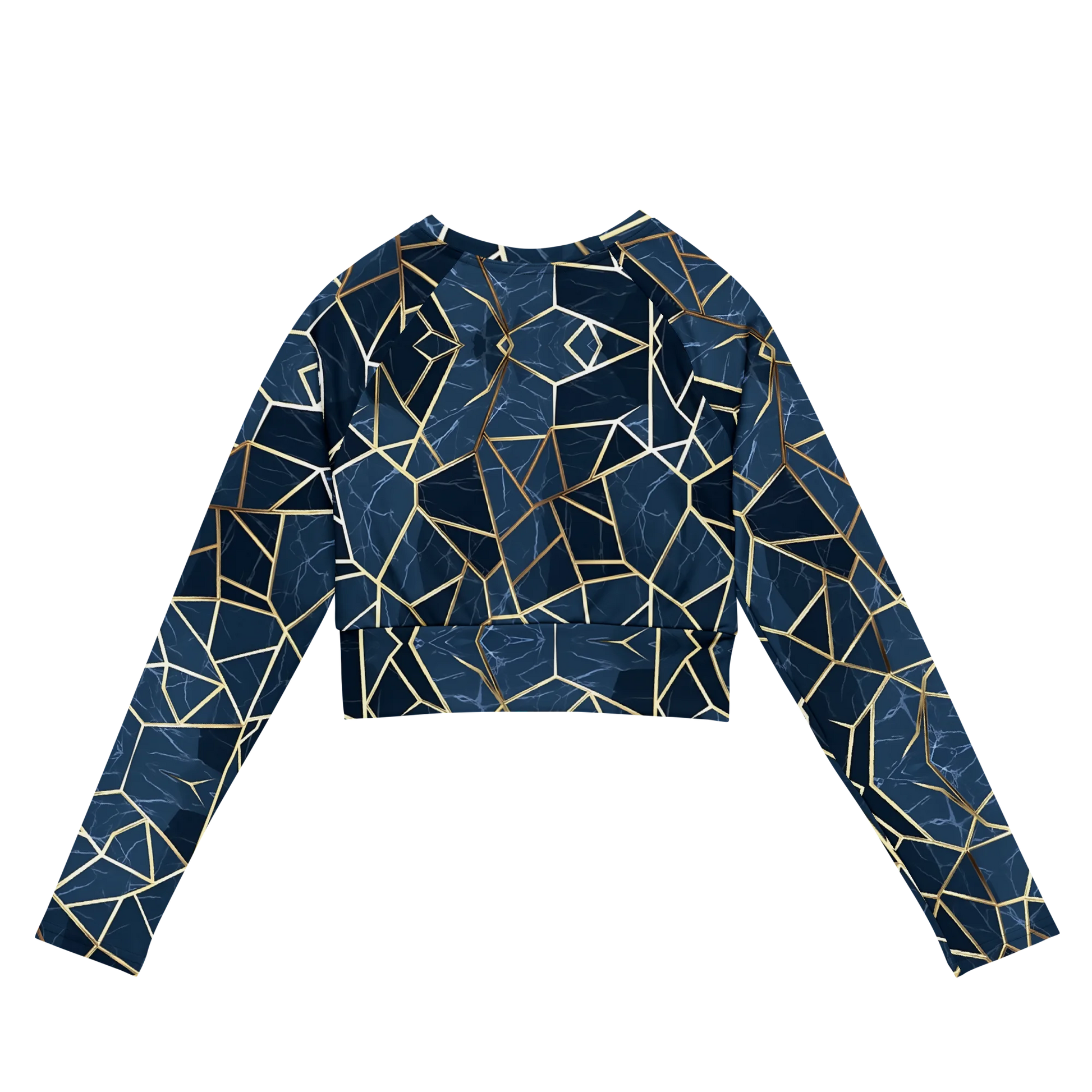 Blue Geometric Nordic Sky Recycled Long-sleeve Crop Top