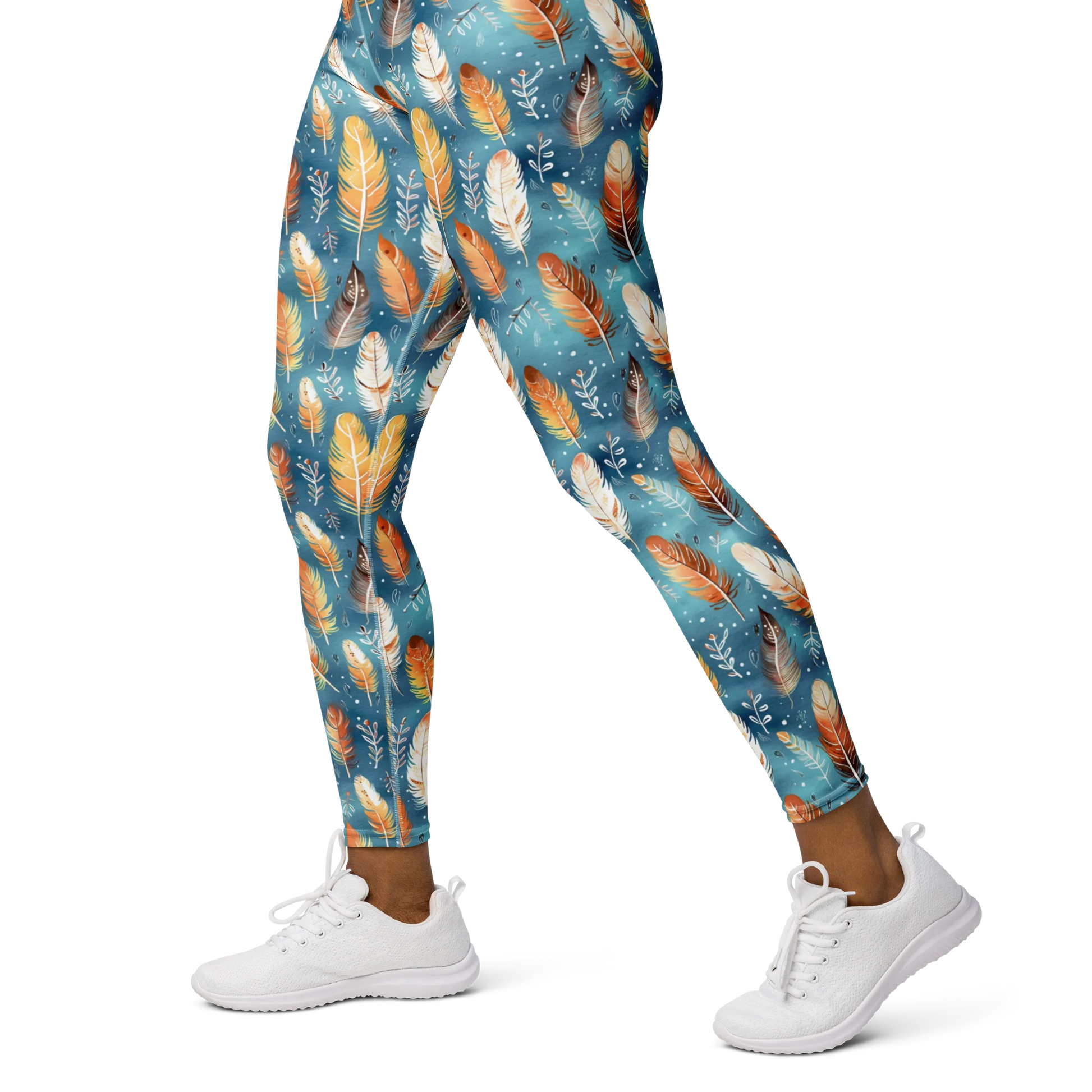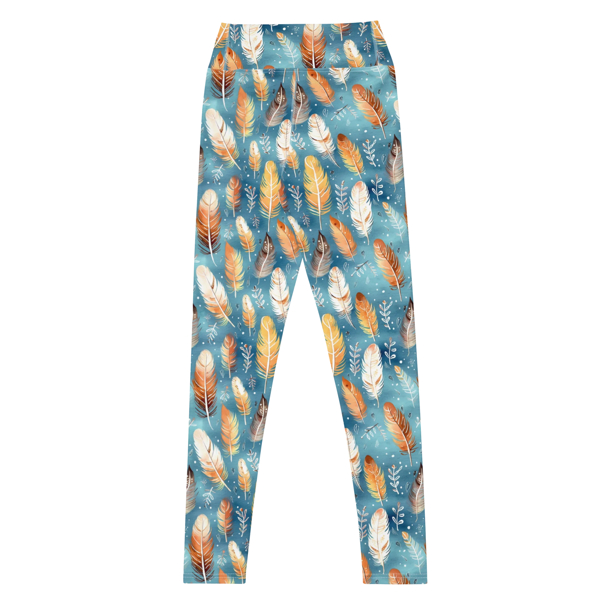 Be vibrant with Blue & Orange Feather's Tale Yoga Leggings. Colorful and dynamic, perfect for a bold, lively look.