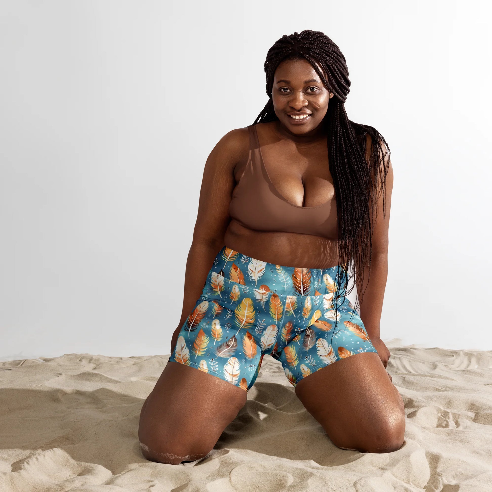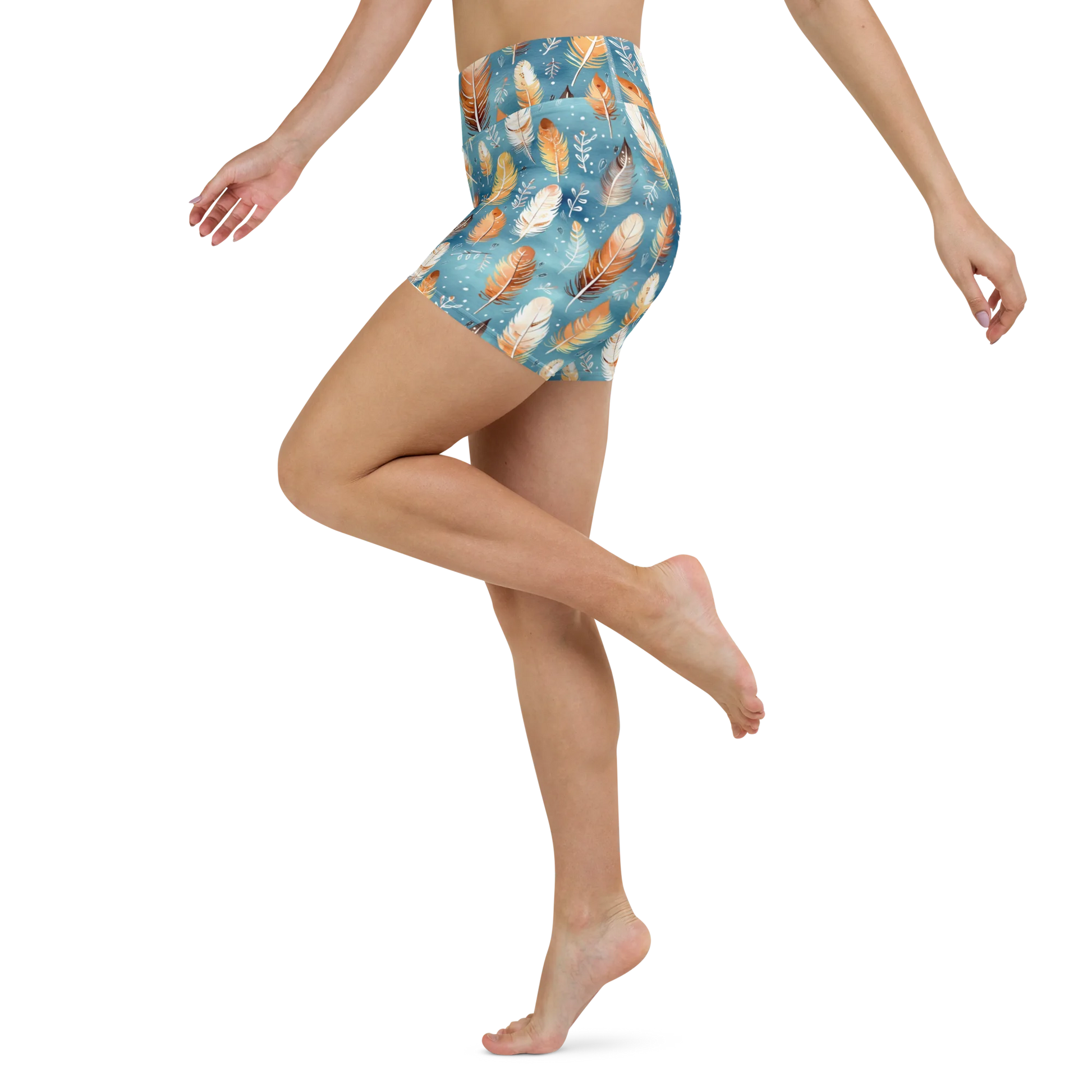 Unleash your inner elegance with Blue & Orange Feather's Tale Yoga Shorts. The dynamic feather pattern in contrasting colors adds a stylish touch to your yoga sessions and beyond. Designed for comfort and flexibility, these shorts will be your go-to choice for any workout.