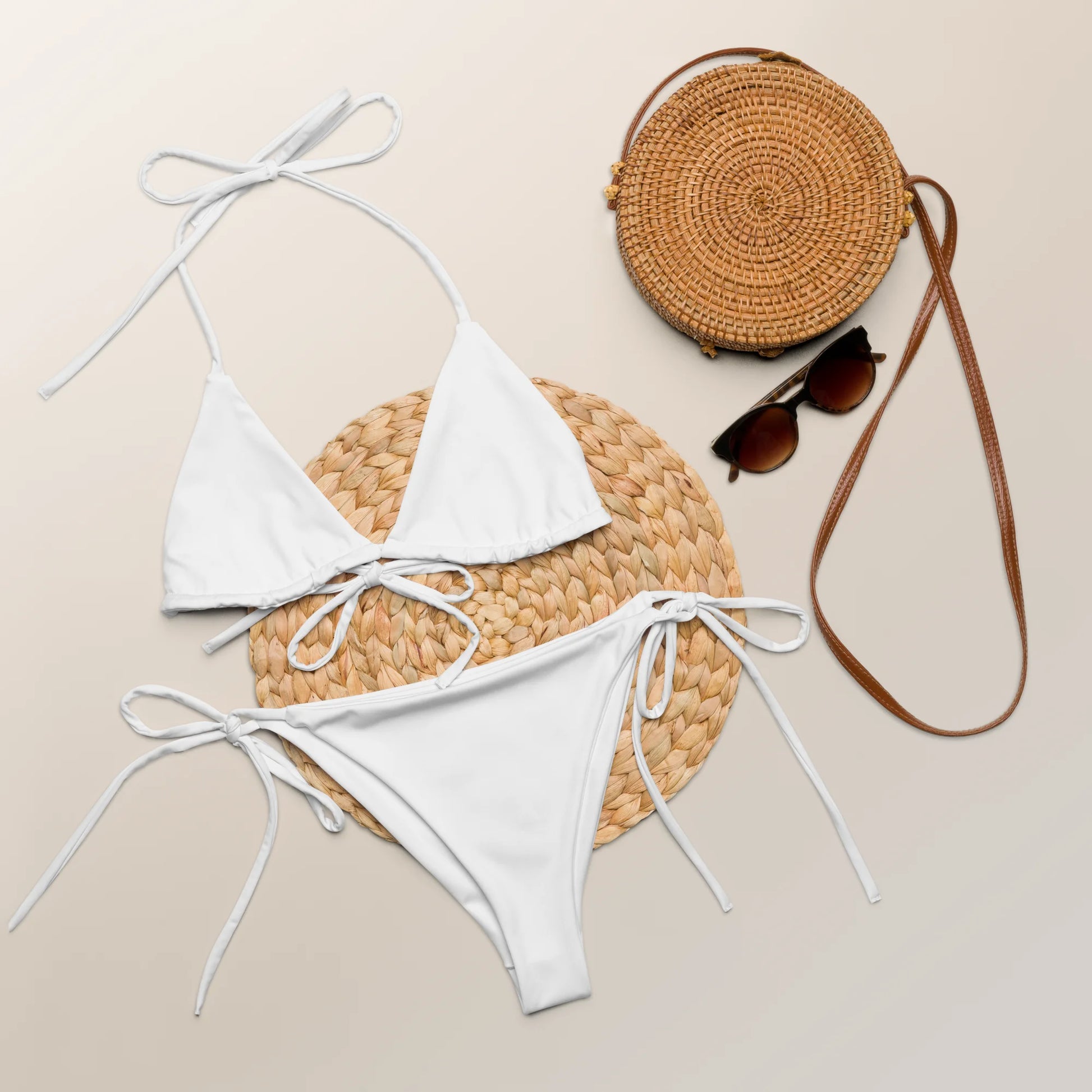 Stay sun-kissed in sustainable style with the Brilliant White Basic Recycled String Bikini. Its classic silhouette made from recycled fabrics is perfect for guilt-free beach days and eco-friendly fun. Make a stylish splash and get yours now.