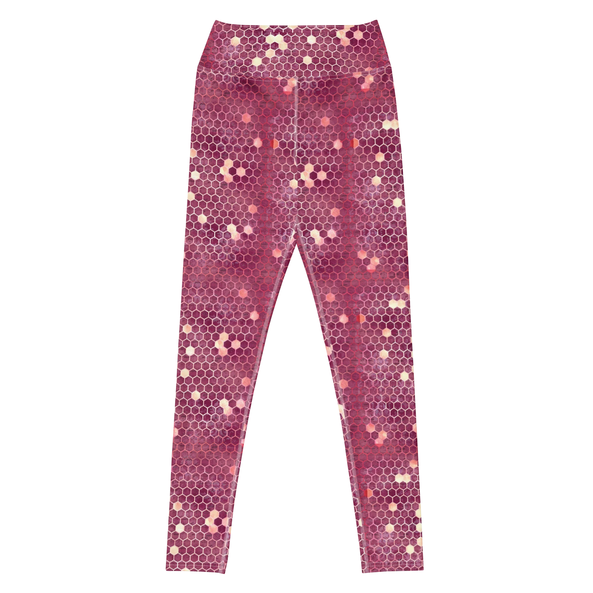 Add luxury with Burgundy Gold Honeycombs Ornament Yoga Leggings. Rich colors and intricate design for an elegant look.