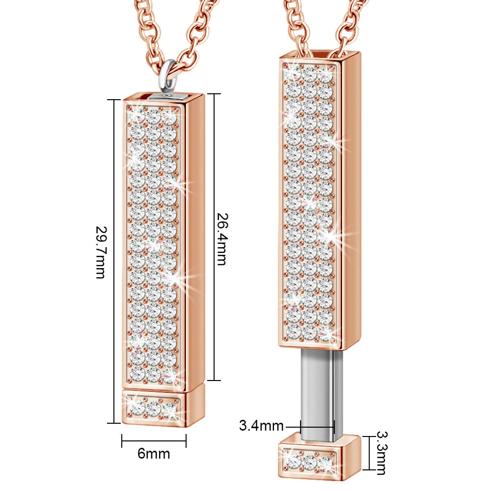 This necklace pendant includes trendy design elements with a rectangle retractable stick, rhinestones, and names custom, which is made of high-quality material, and the edges of the necklace are smooth and clear.