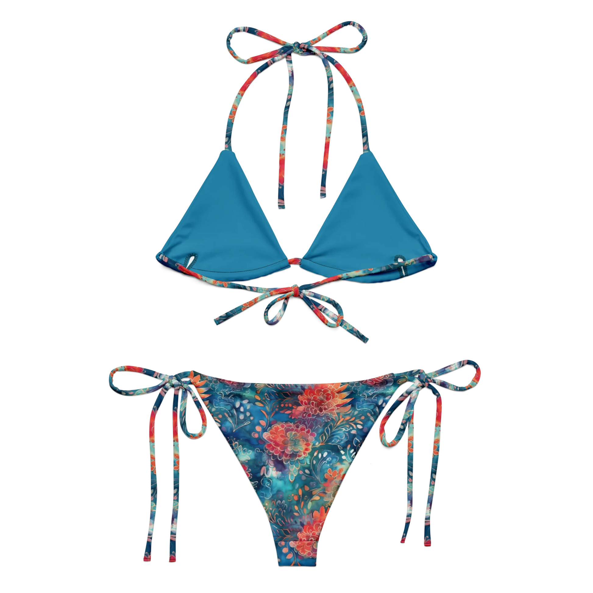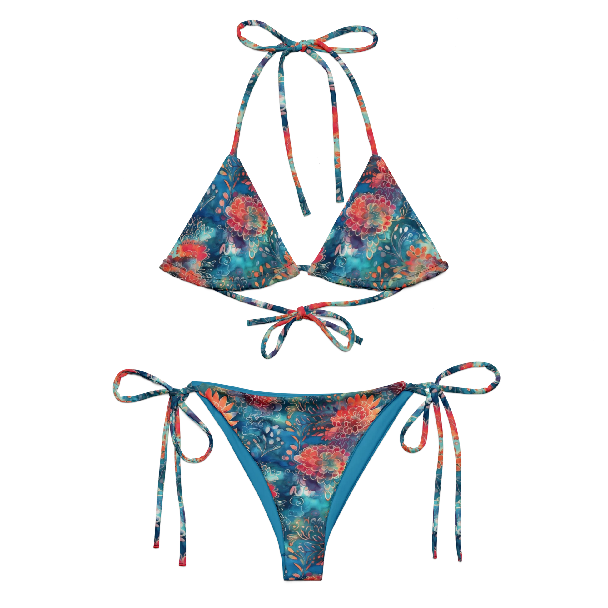 Discover a peaceful escape with our Ethereal Meadow Recycled String Bikini. Made with recycled materials, this bikini features serene floral designs that will transport you to a tranquil meadow. Embrace both style and sustainability with this exclusive swimwear option.