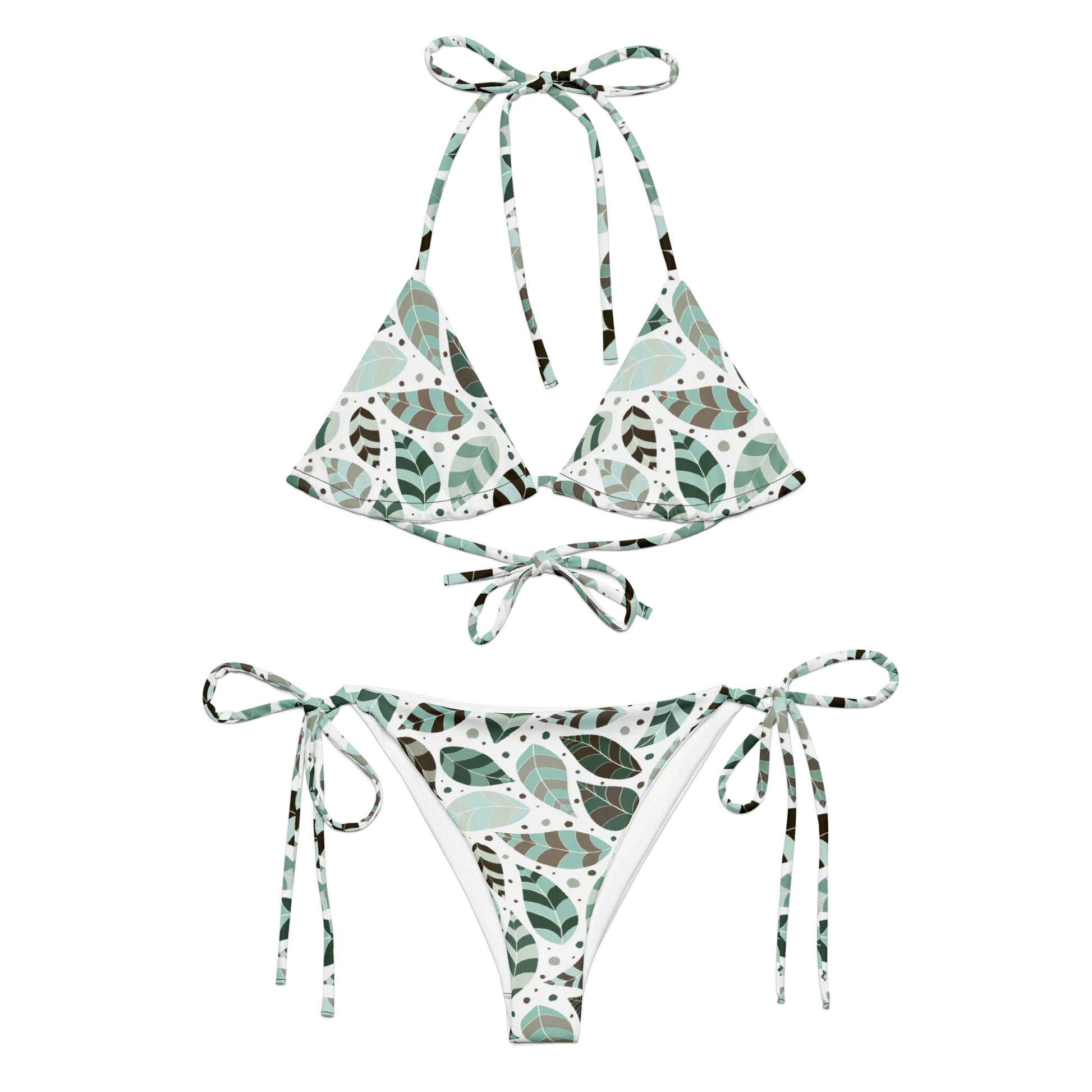 Put on this show-stopping Green Leafy Ornament Recycled Bikini and flaunt your style! Its striking leafy ornament pattern in shades of green will make you stand out in any crowd while radiating elegance and grace. Crafted from soft and stretchy recycled polyester, this eco-friendly set is a must-have for your swimwear wardrobe—and it pairs perfectly with all your favorite looks!