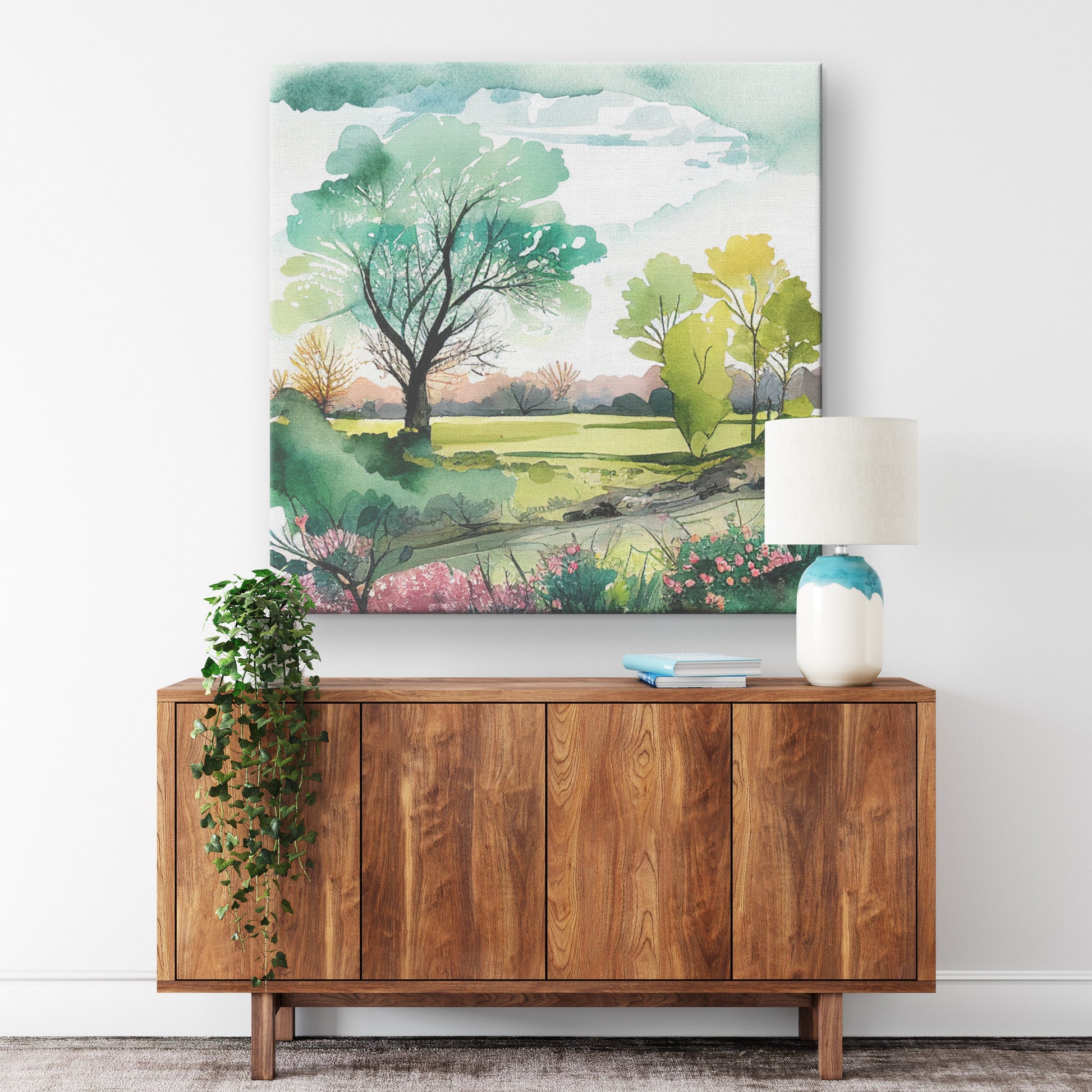 Become entranced by the breathtaking beauty of nature with this Green Spring Landscape Wall Art. Its awe-inspiring canvas print will instantly transform any room, creating a serene and tranquil oasis that you'll never want to leave. Bring the outdoors in!