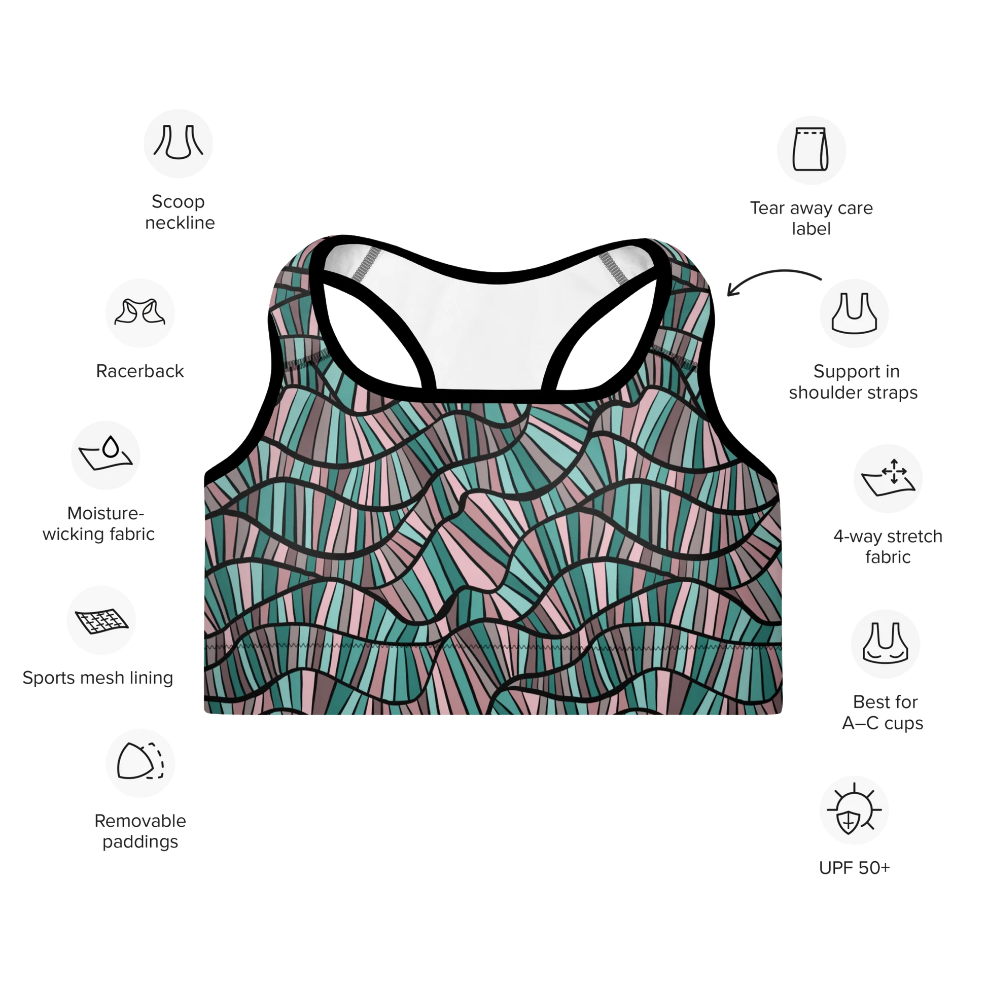 The Gren'n'rose Artistic Abstractions Sports Bra lets you make a fashion statement while keeping up with your active lifestyle. With its eye-catching green and rose abstract pattern, soft moisture-wicking fabric, and supportive cross-back straps, this sports bra is the perfect way to express your unique style and unleash your creative side!
