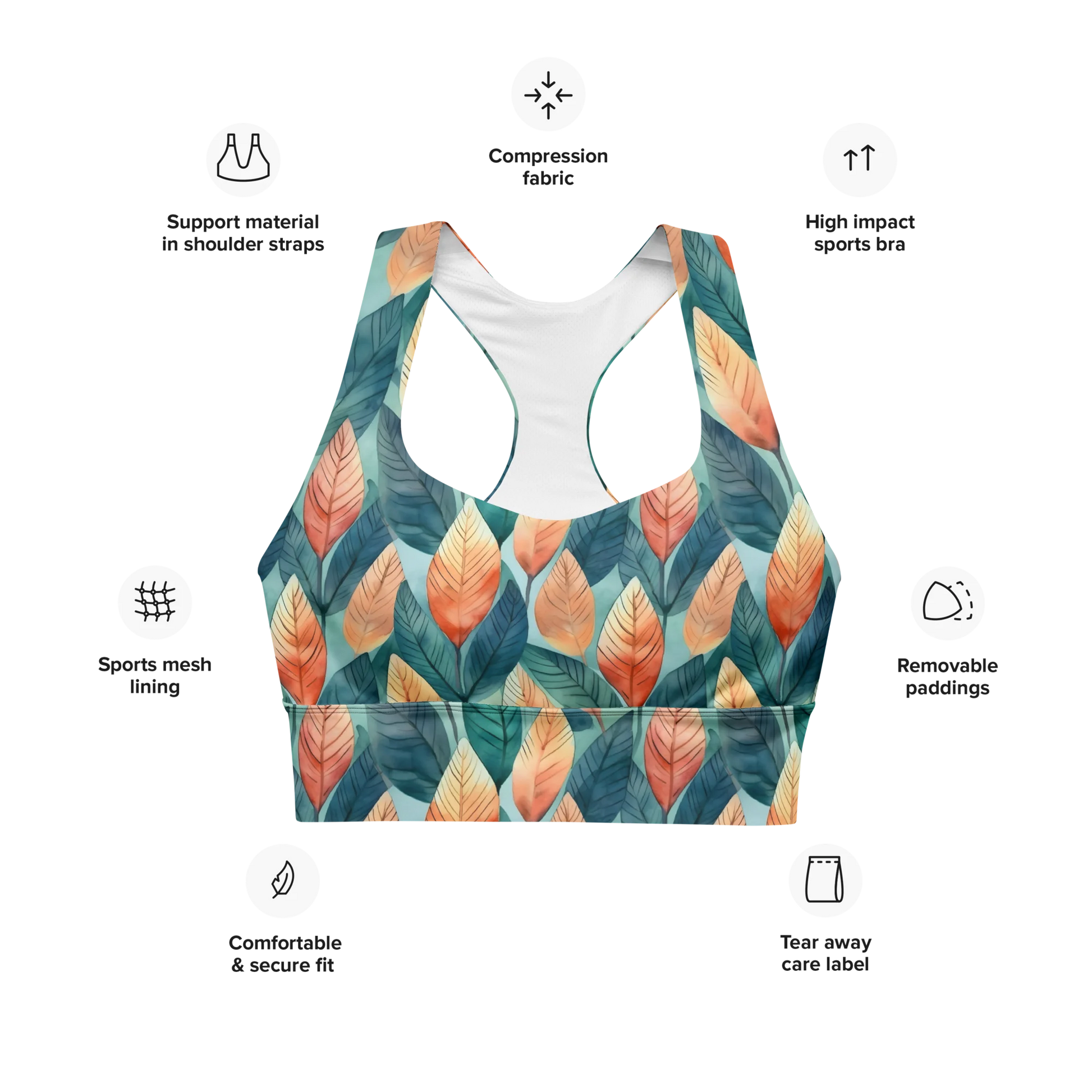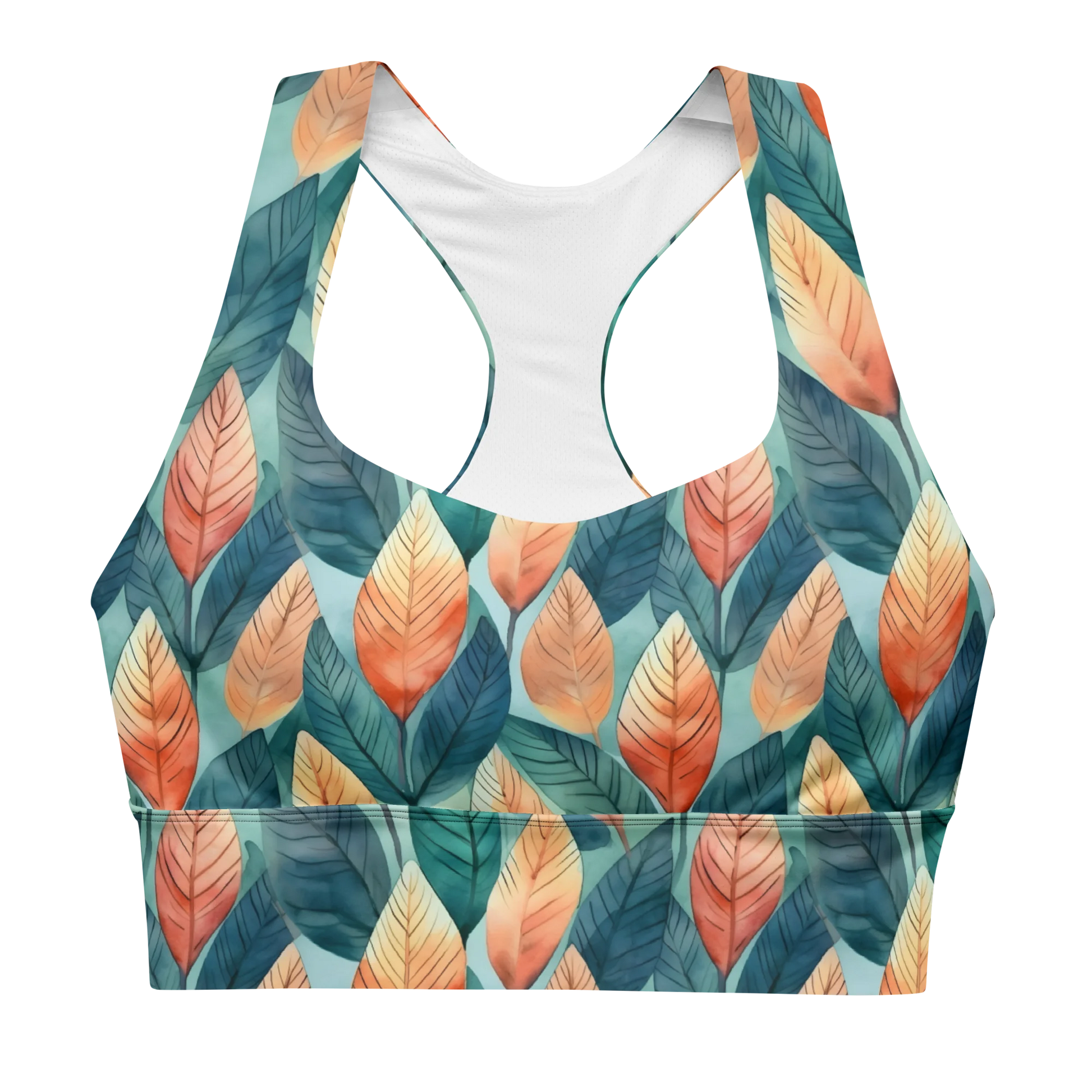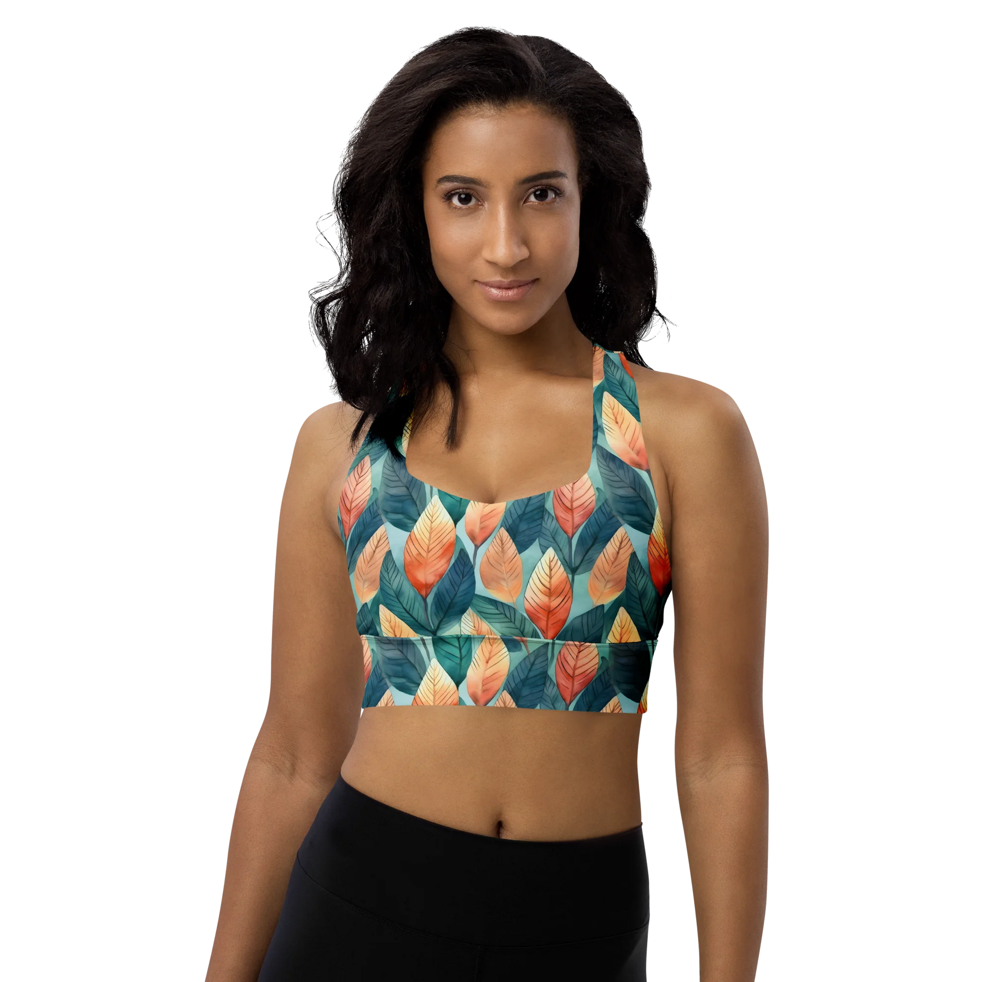 Experience effortless comfort and timeless style with our Leafy Minimalism Longline Sports Bra. Featuring a breathable fabric and flexible fit, the racerback design and elastic underband provide just the right amount of light support. With its minimalist leafy pattern, the sports bra offers an understated look that is perfect for any activity. Look and feel your best with a minimalistic style!