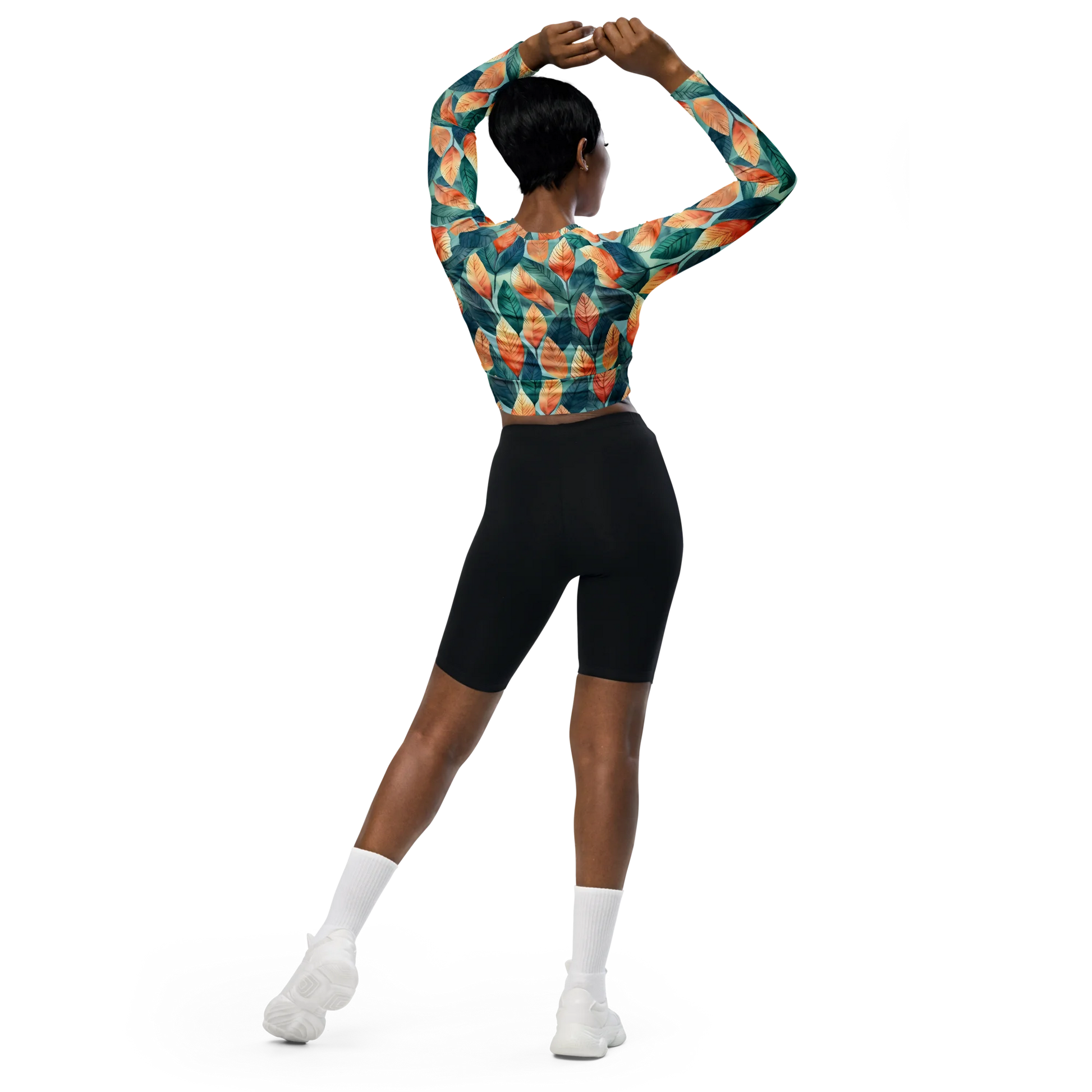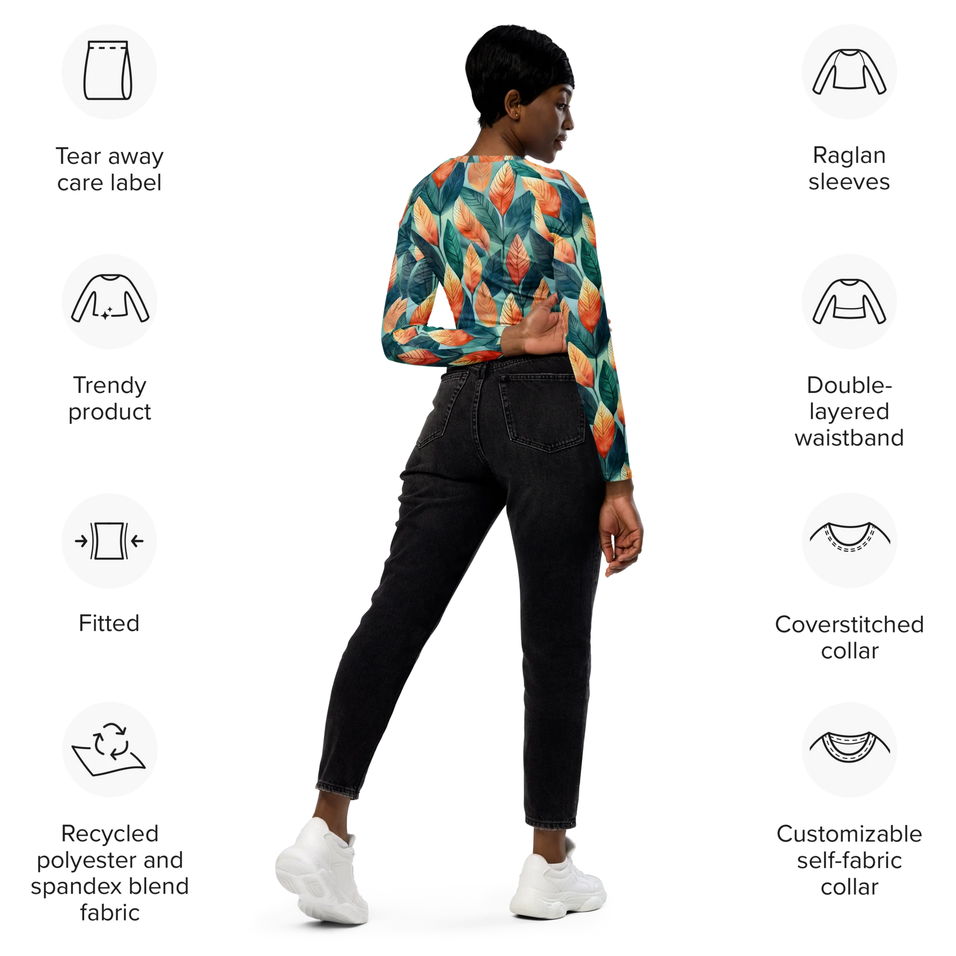 Leafy Minimalism Recycled Long-sleeve Crop Top