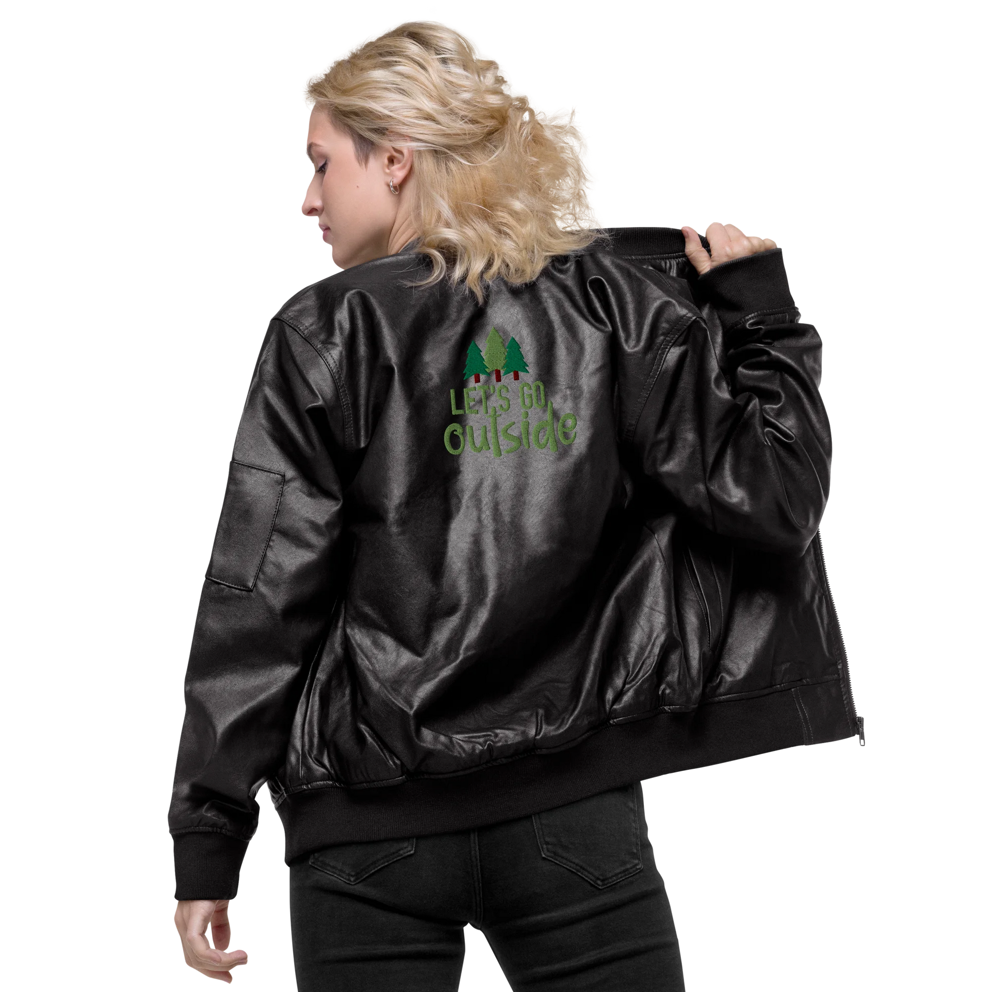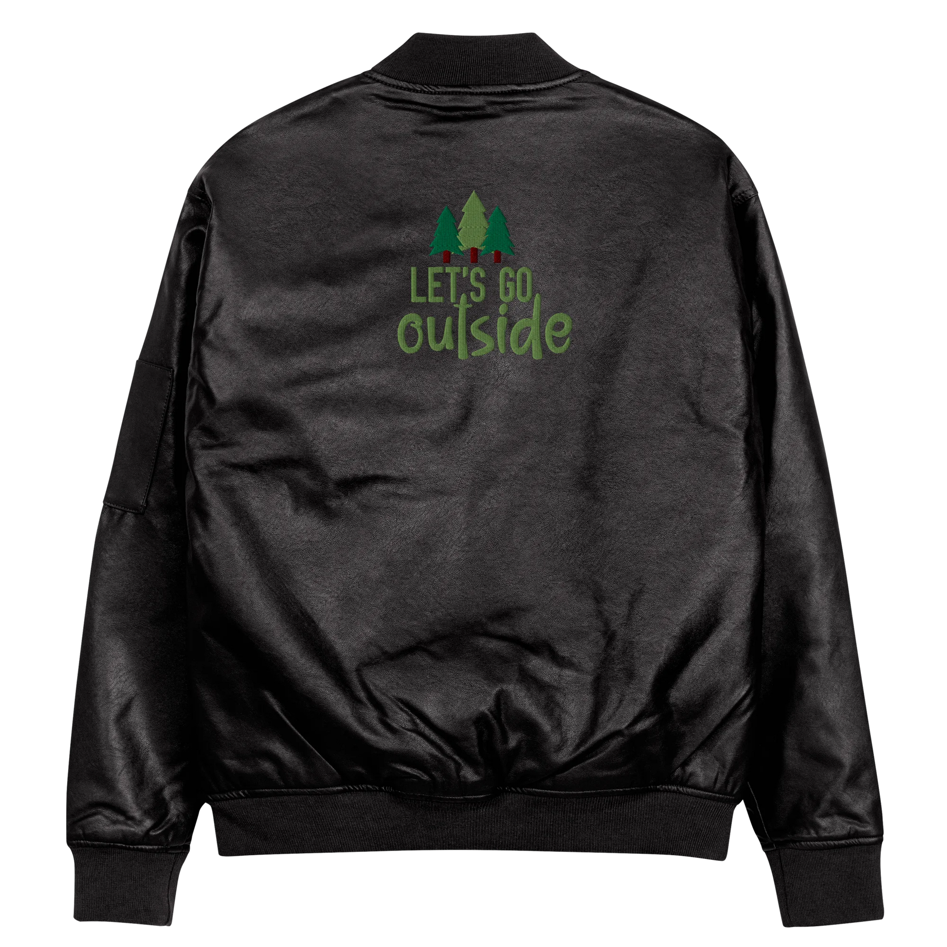 Let's Go Outside Embroidered Faux Leather Bomber Jacket