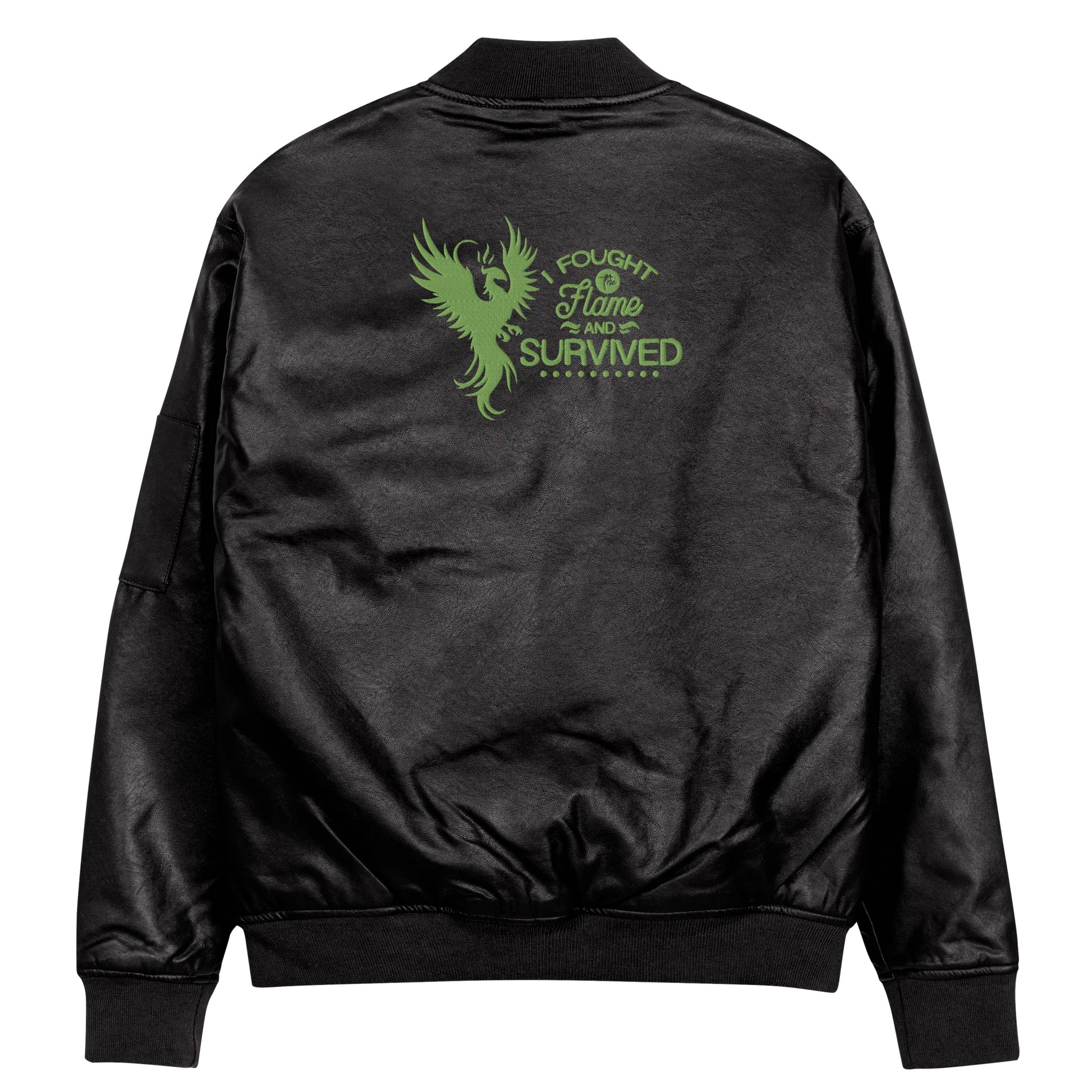 I Fought Flame and Survived Embroidered Faux Leather Bomber Jacket