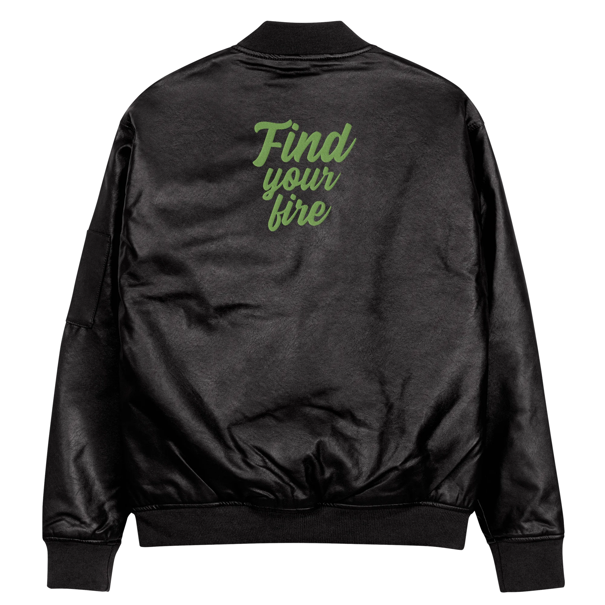 Find Your Fire Embroidered Faux Leather Bomber Jacket