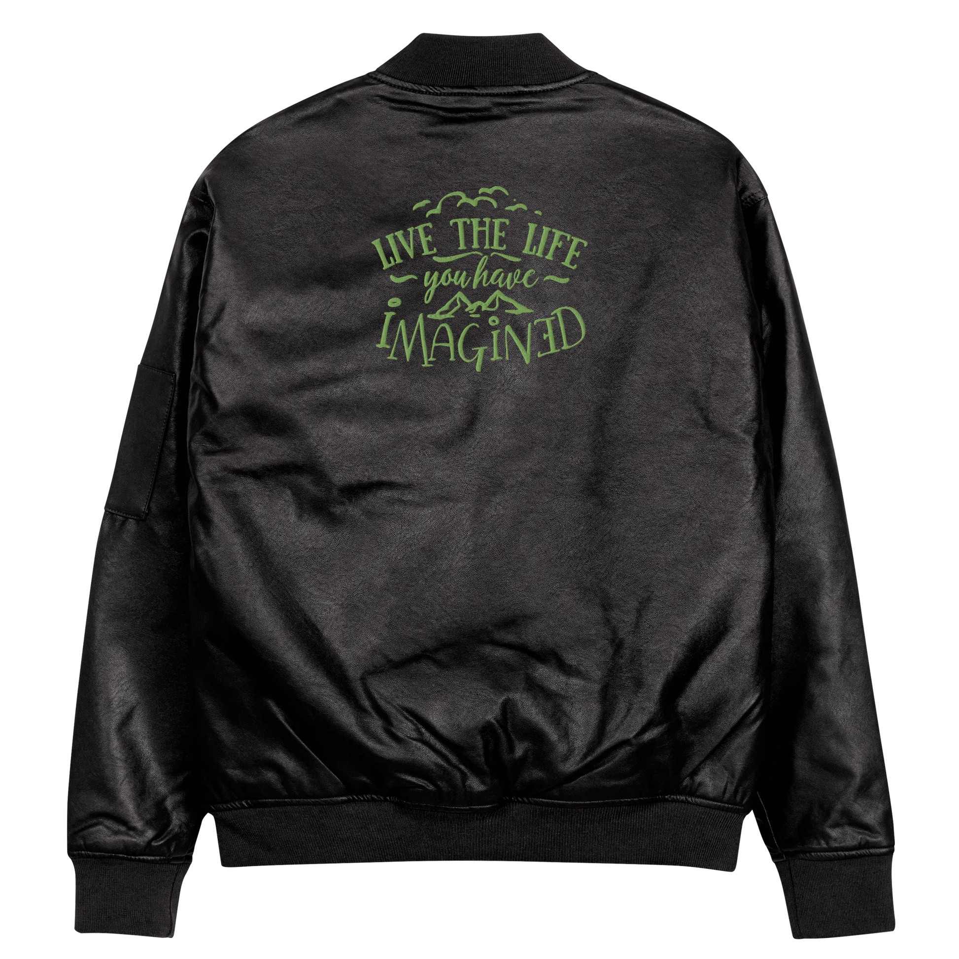 Live The Life You Have Imagined Embroidered Faux Leather Bomber Jacket