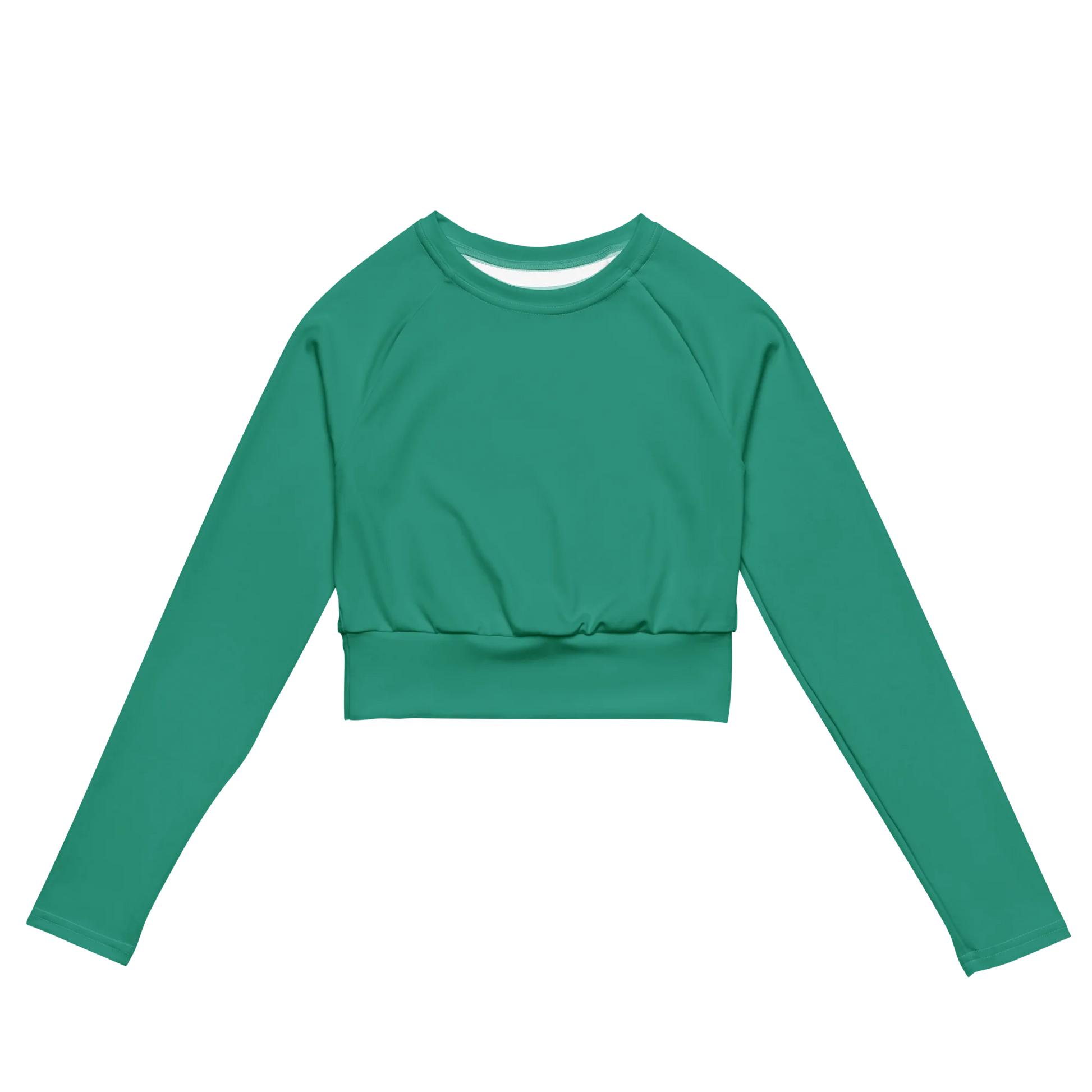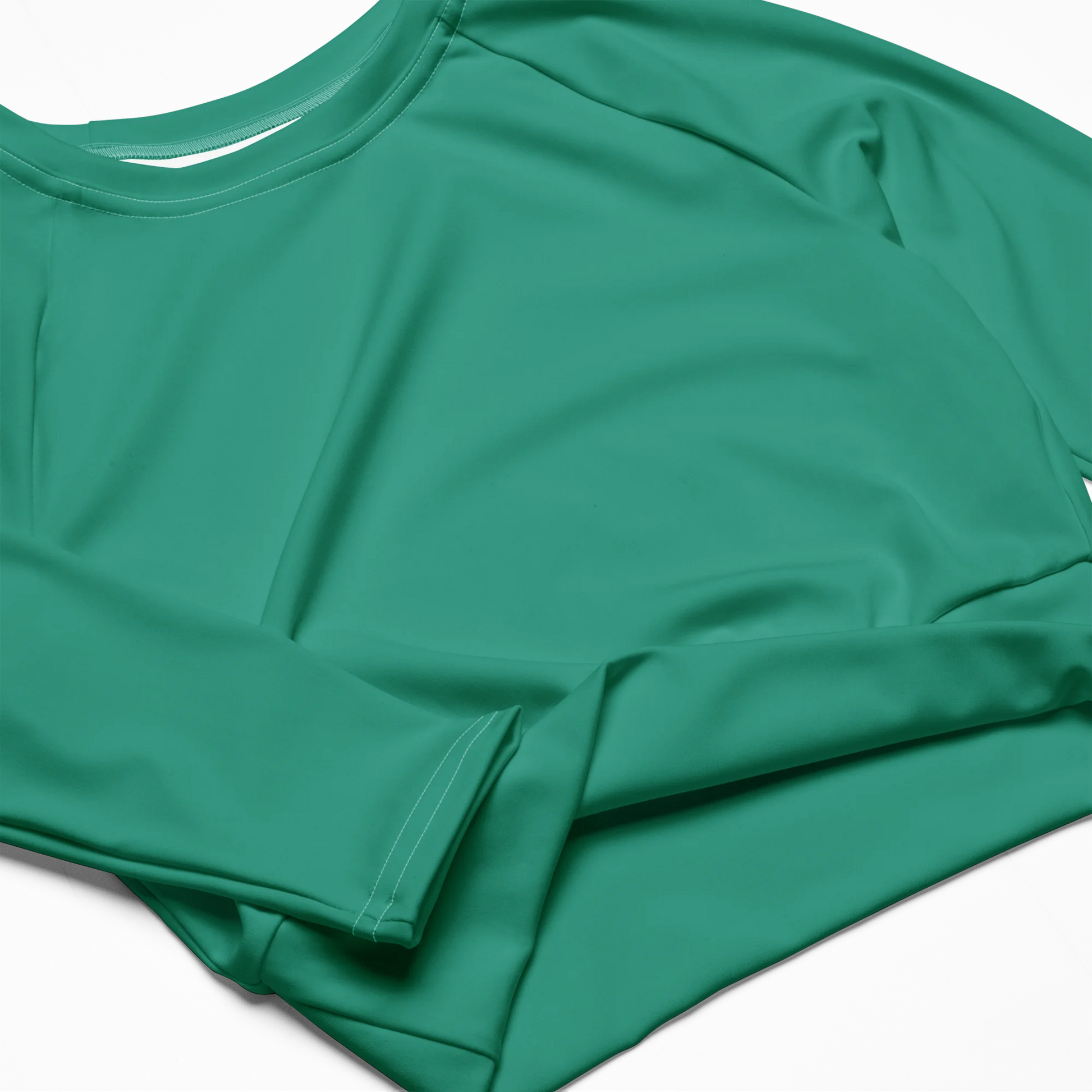 Marine Green Basic Recycled Long-sleeve Crop Top