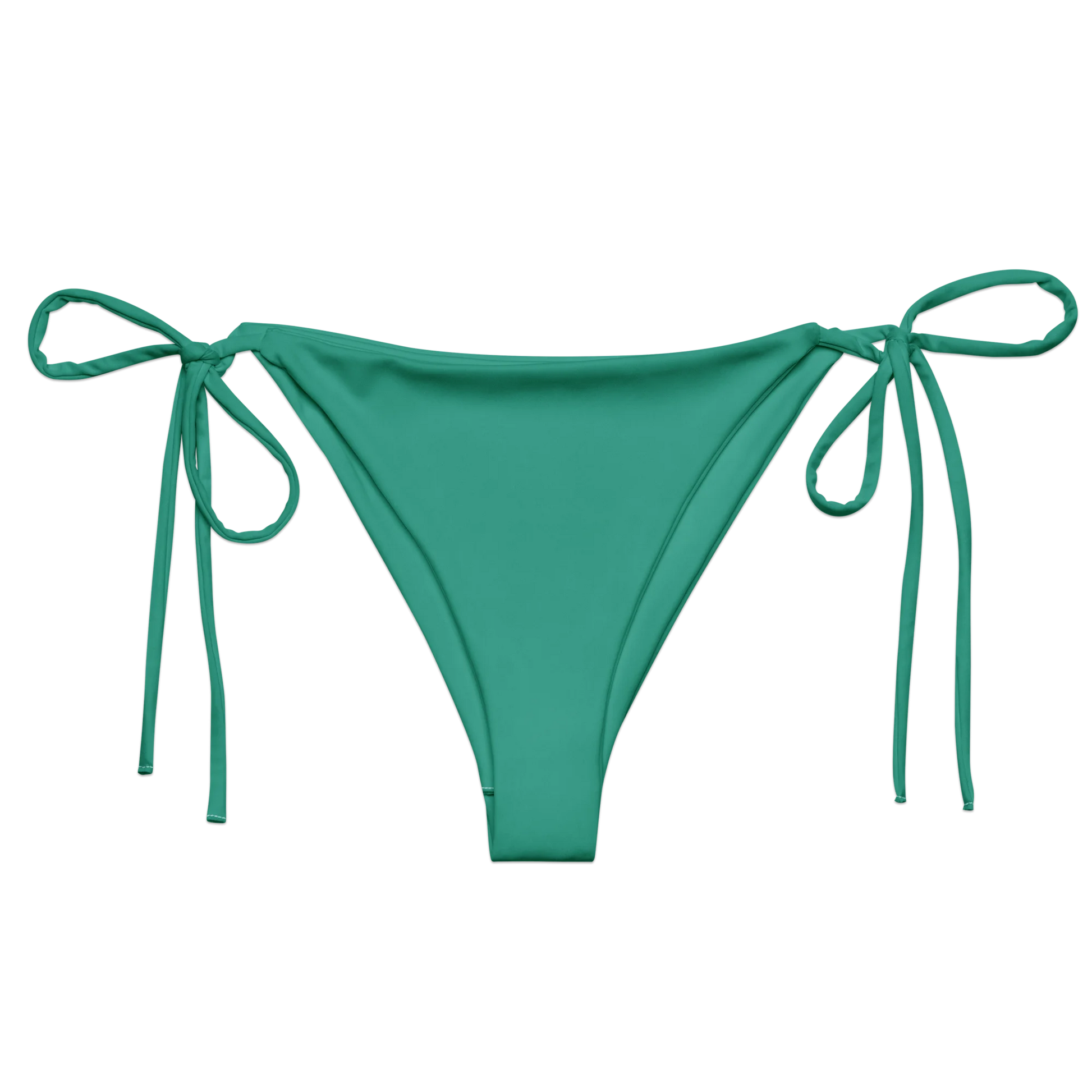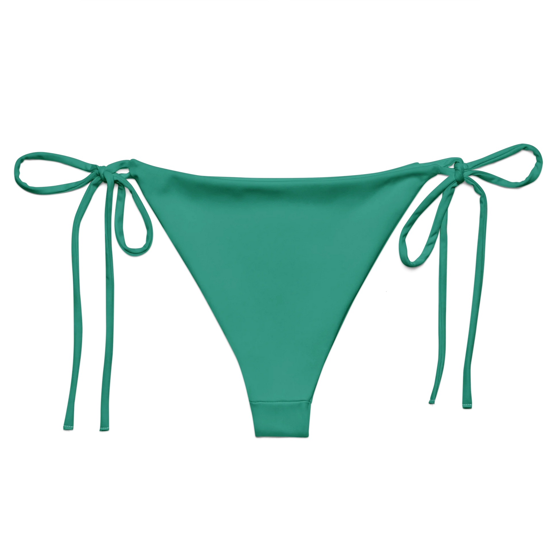 Stand out from the crowd this season with the Marine Green Basic Recycled String Bikini Bottom for the ultimate in sustainable beachwear. Crafted from a recycled fabric blend, this bikini bottom allows for an eco-conscious look on the sand that won't be forgotten. Flaunt the minimalist style with the matching string bikini top and make a statement of environmental awareness this season.