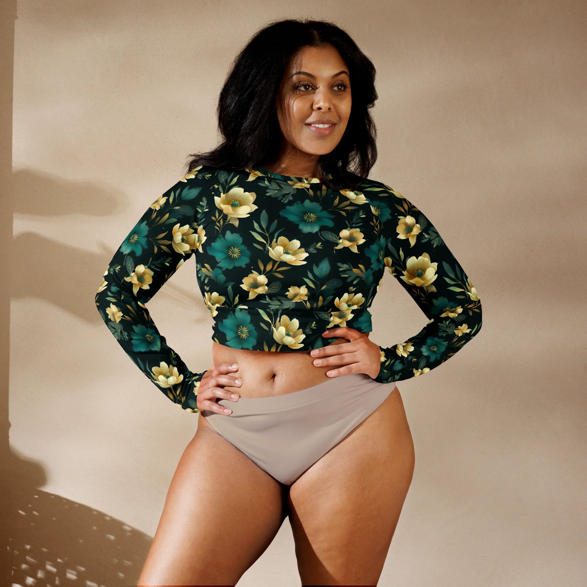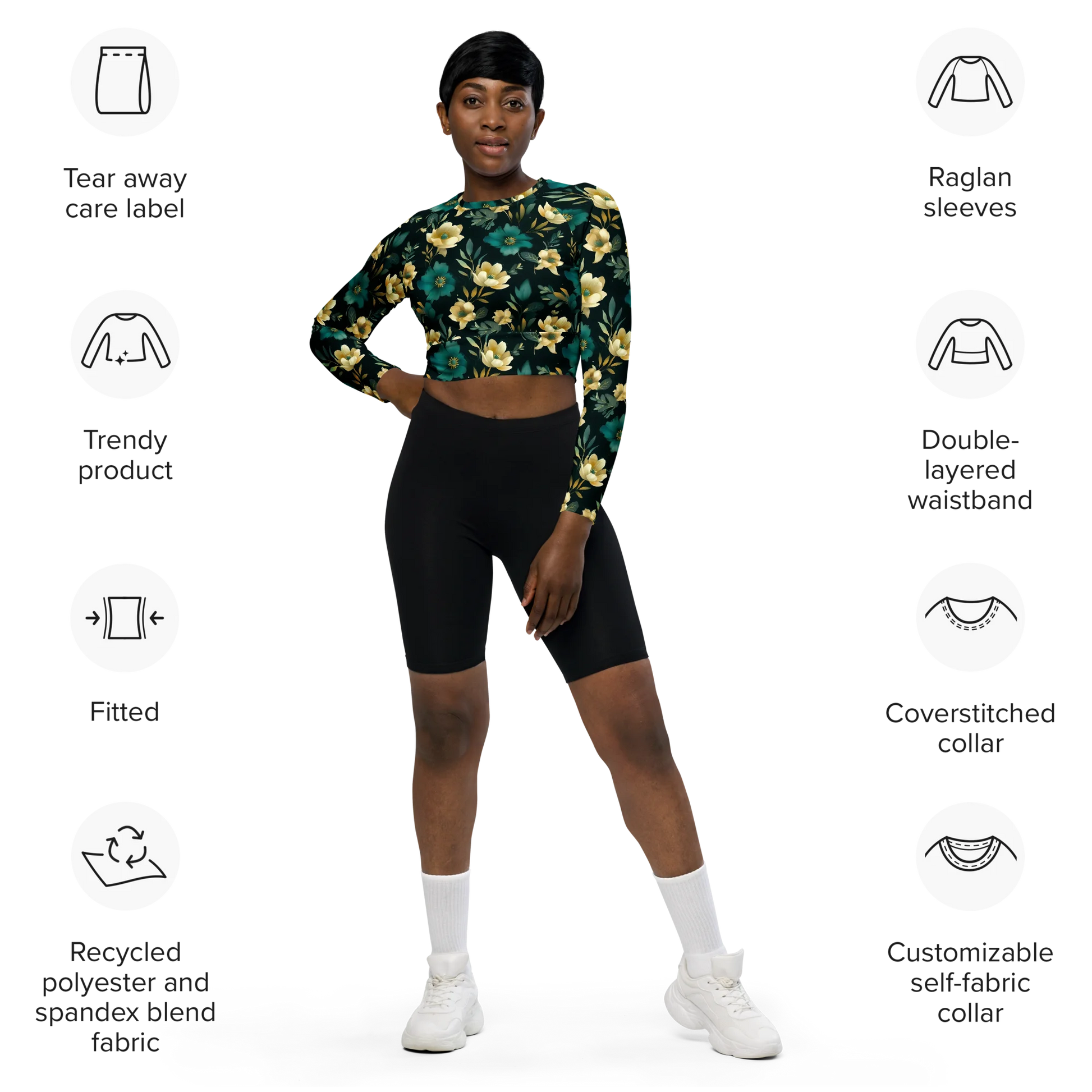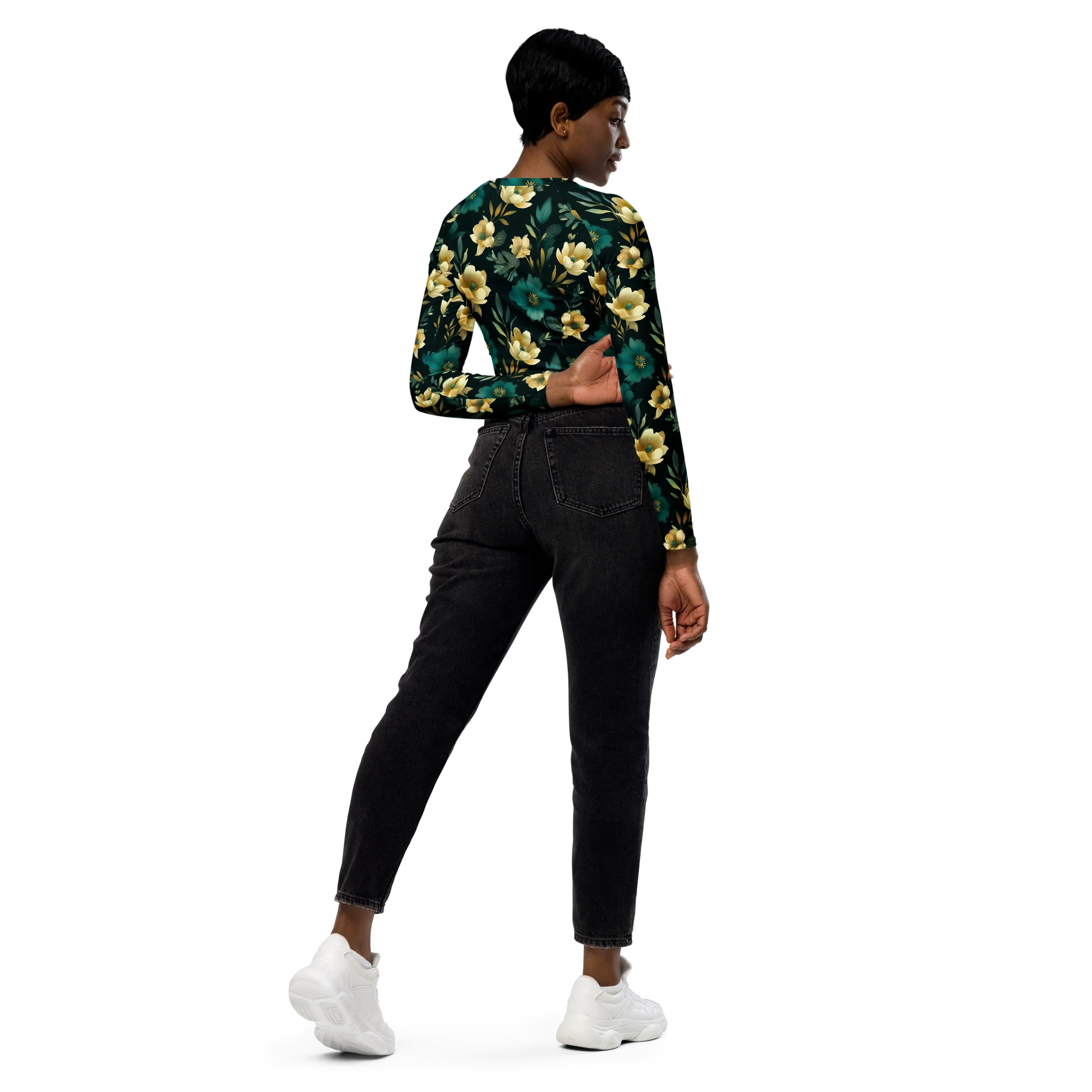 Minimalist Blooms Recycled Long-sleeve Crop Top