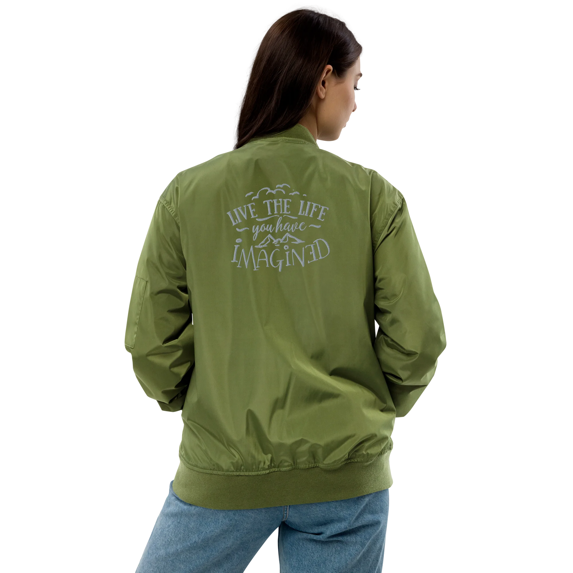 Live The Life You Have Imagined Embroidered Premium Recycled Bomber Jacket