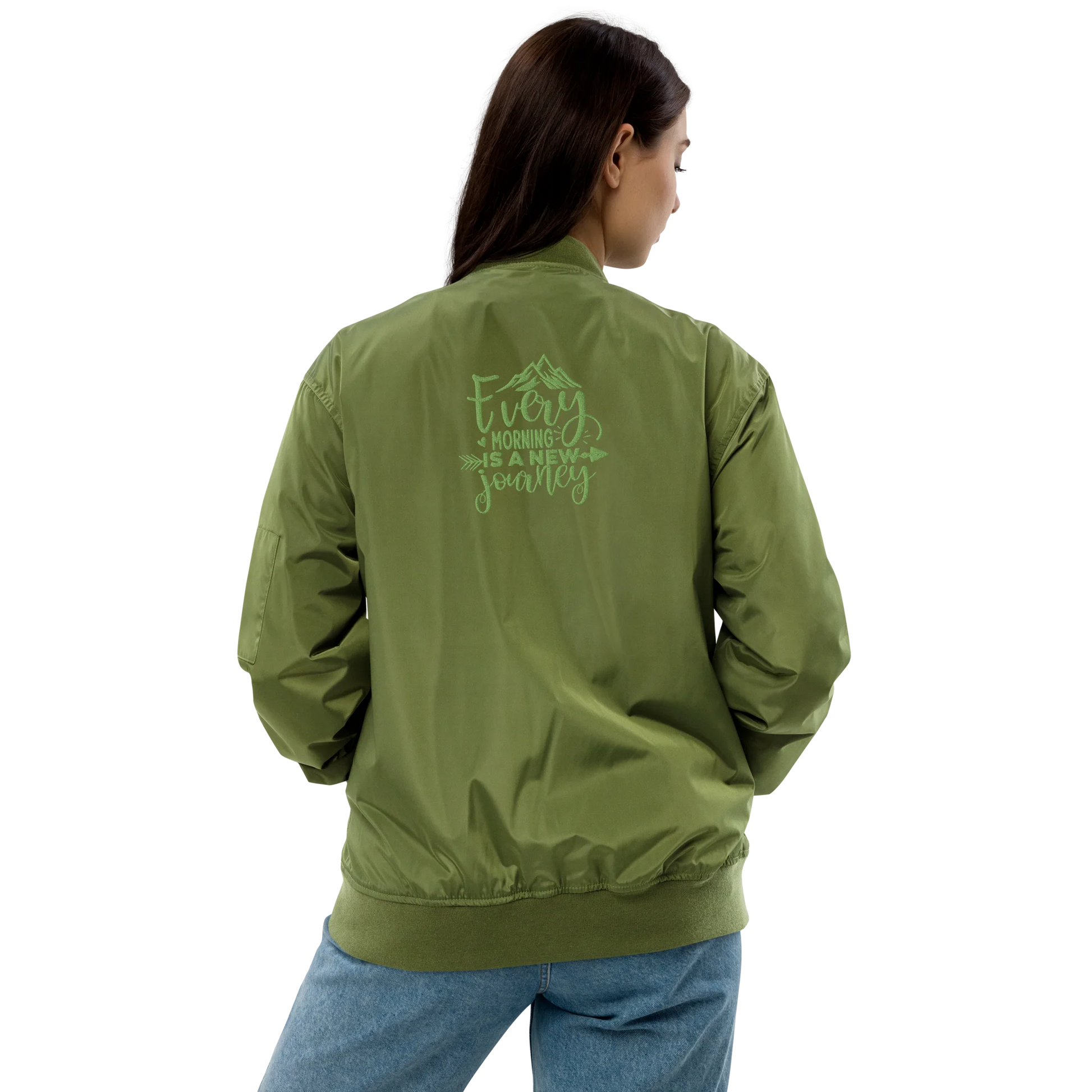 Every Morning Is A New Journey Embroidered Premium Recycled Bomber Jacket