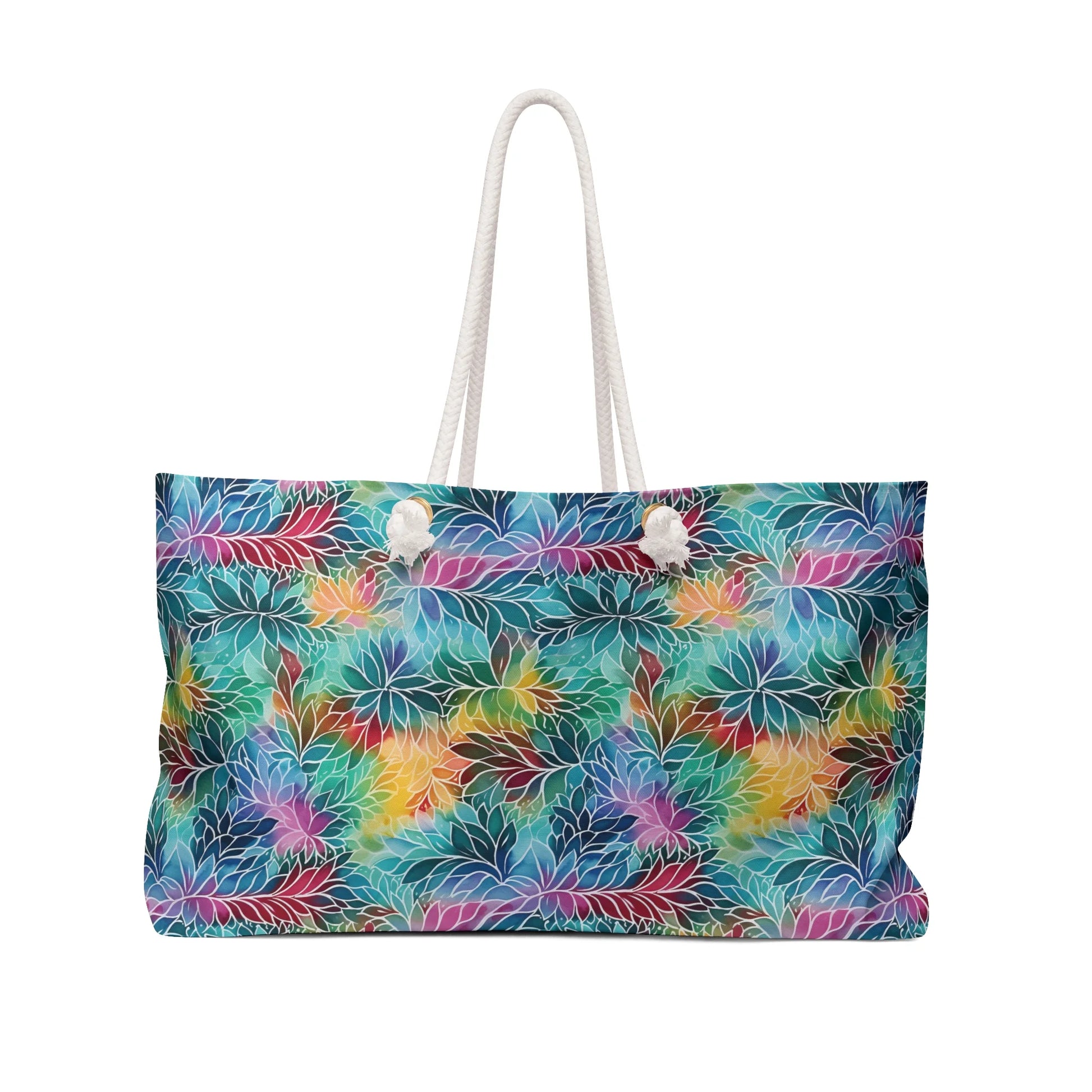Introducing the Rainbow Flowers Boho Weekender Bag! Perfect for those who crave whimsical and vibrant designs, this spacious travel bag will brighten up any trip. Its durable construction ensures your travels are hassle-free. Add a pop of color to your adventures!