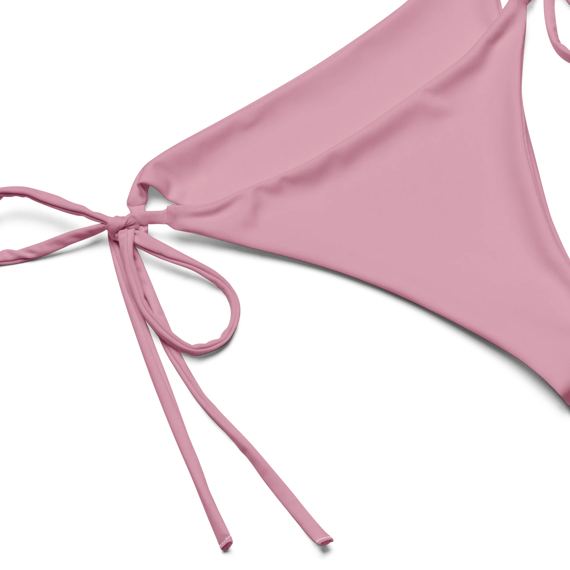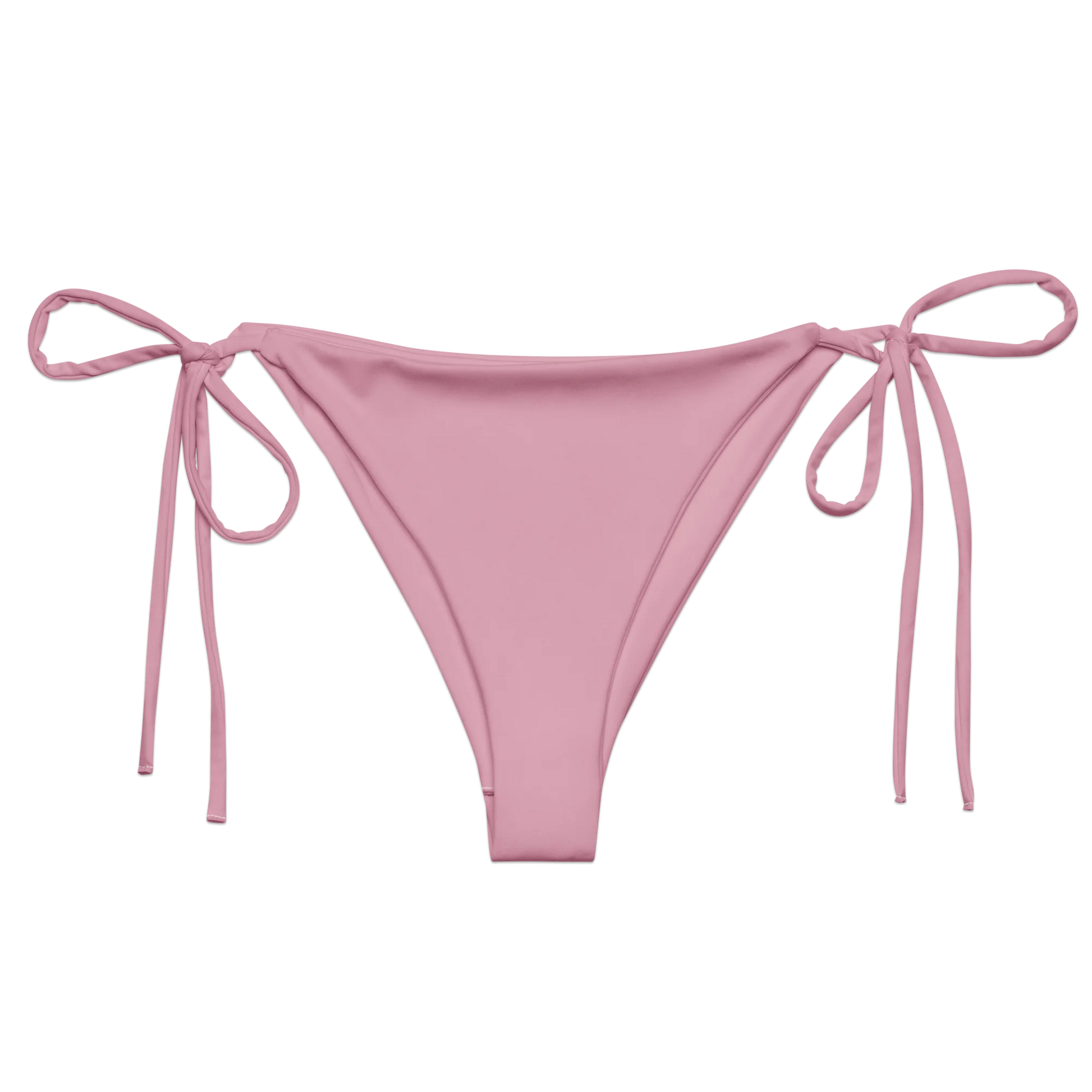Make a splash in our Soft Pink Basic Recycled String Bikini Bottom. Featuring an eco-friendly stretch fabric, these bottoms go perfectly with the matching top for a sustainable yet stylish swim look. Look and feel your best this summer - get yours today!