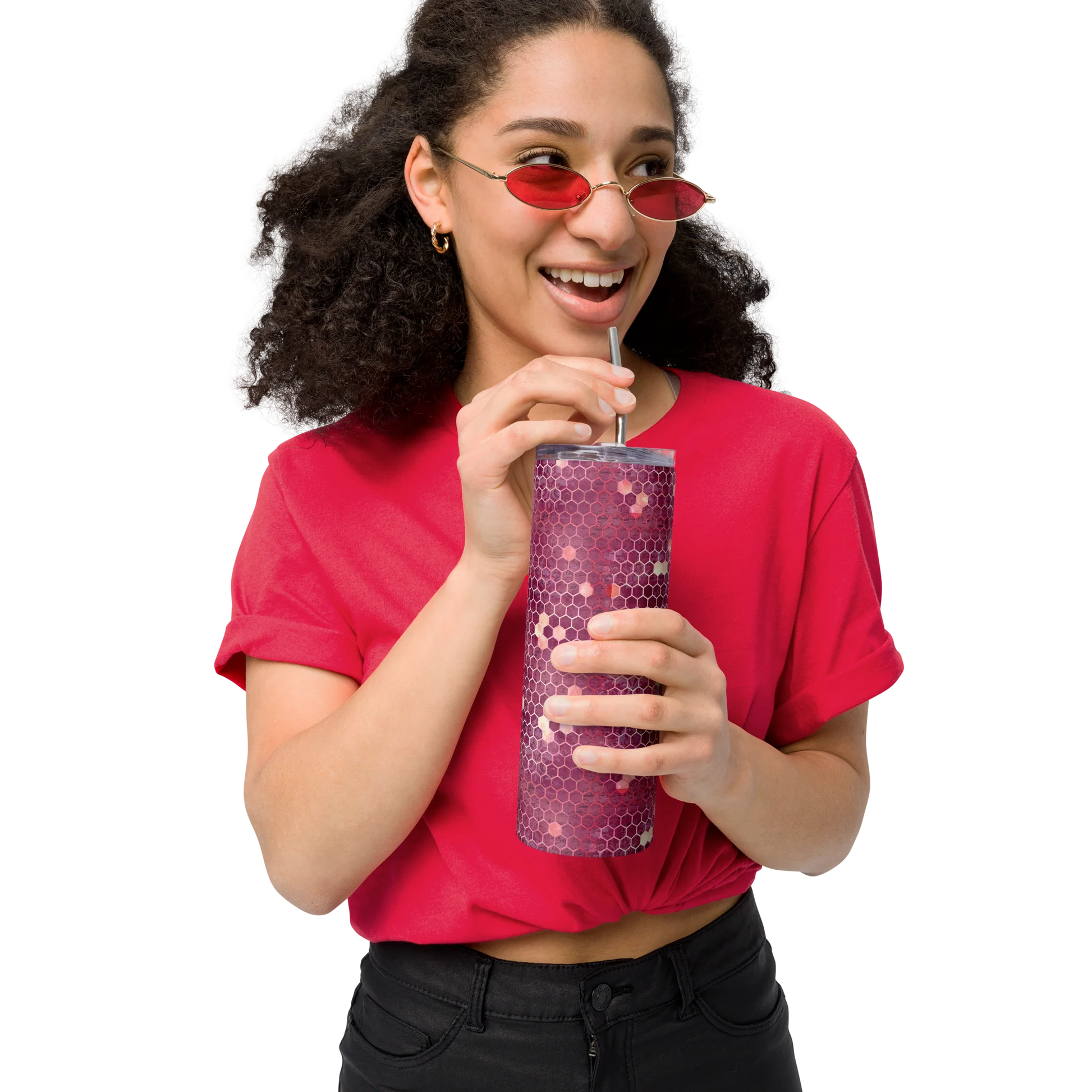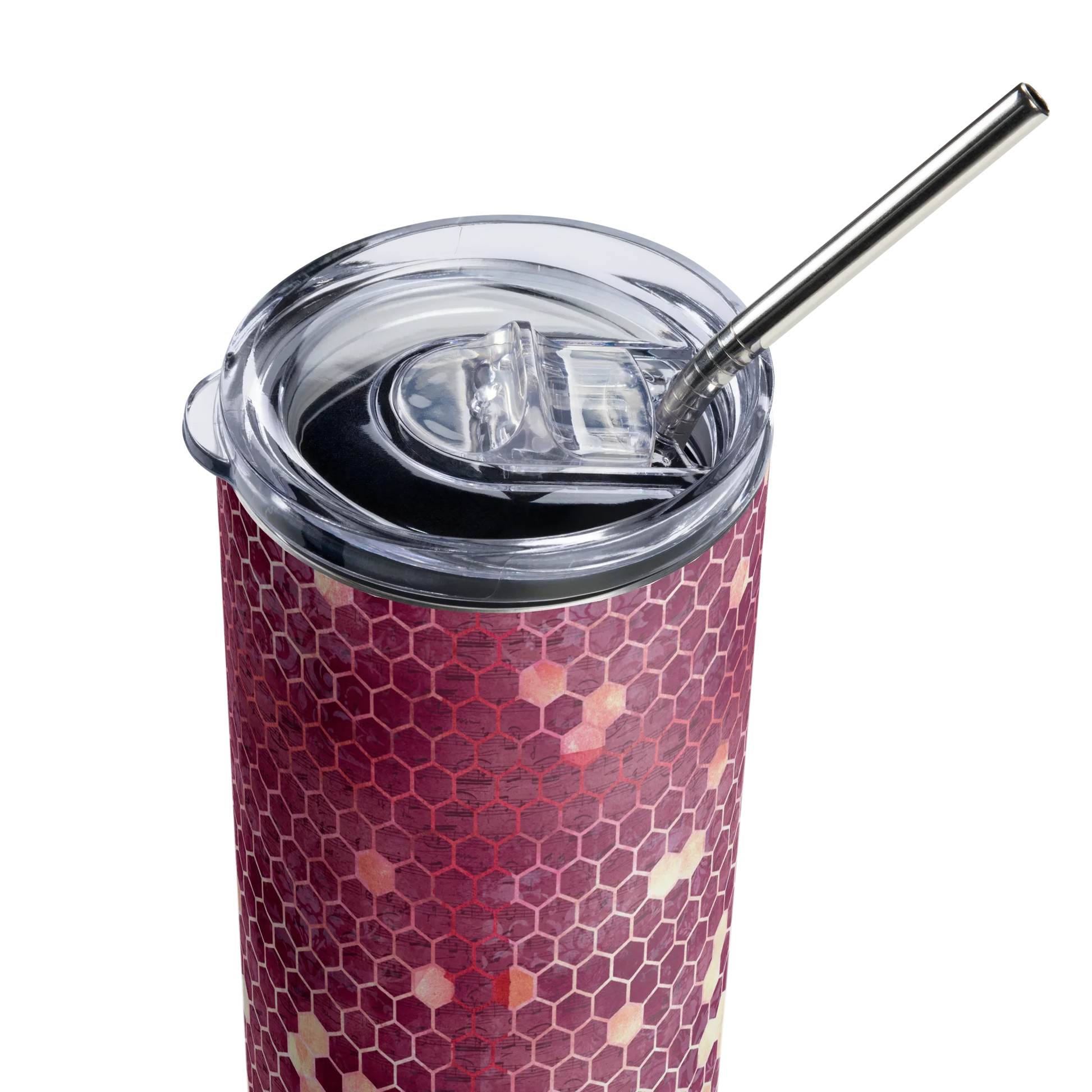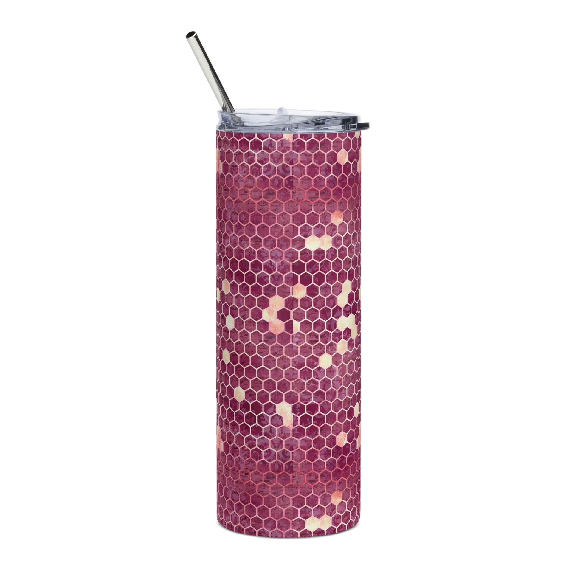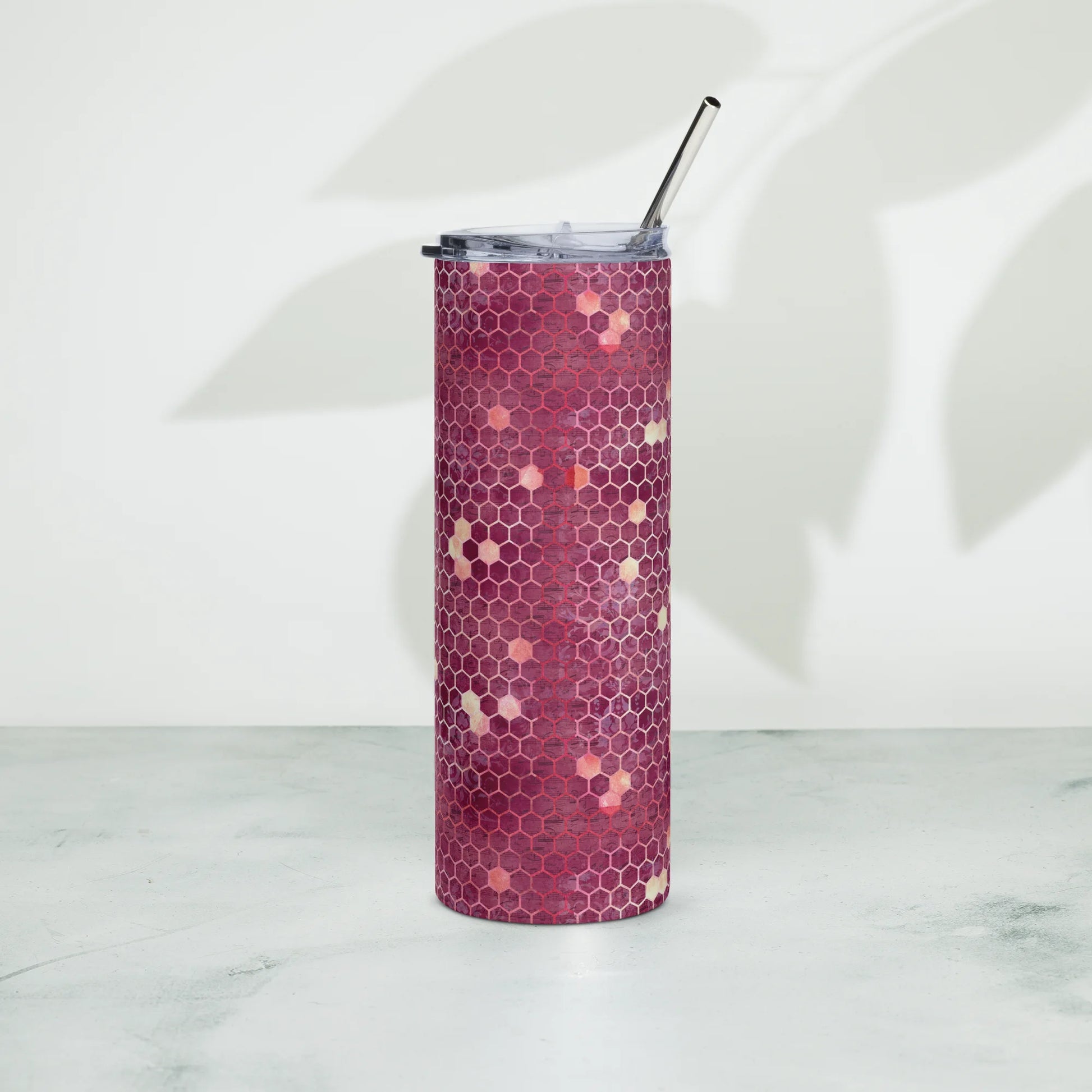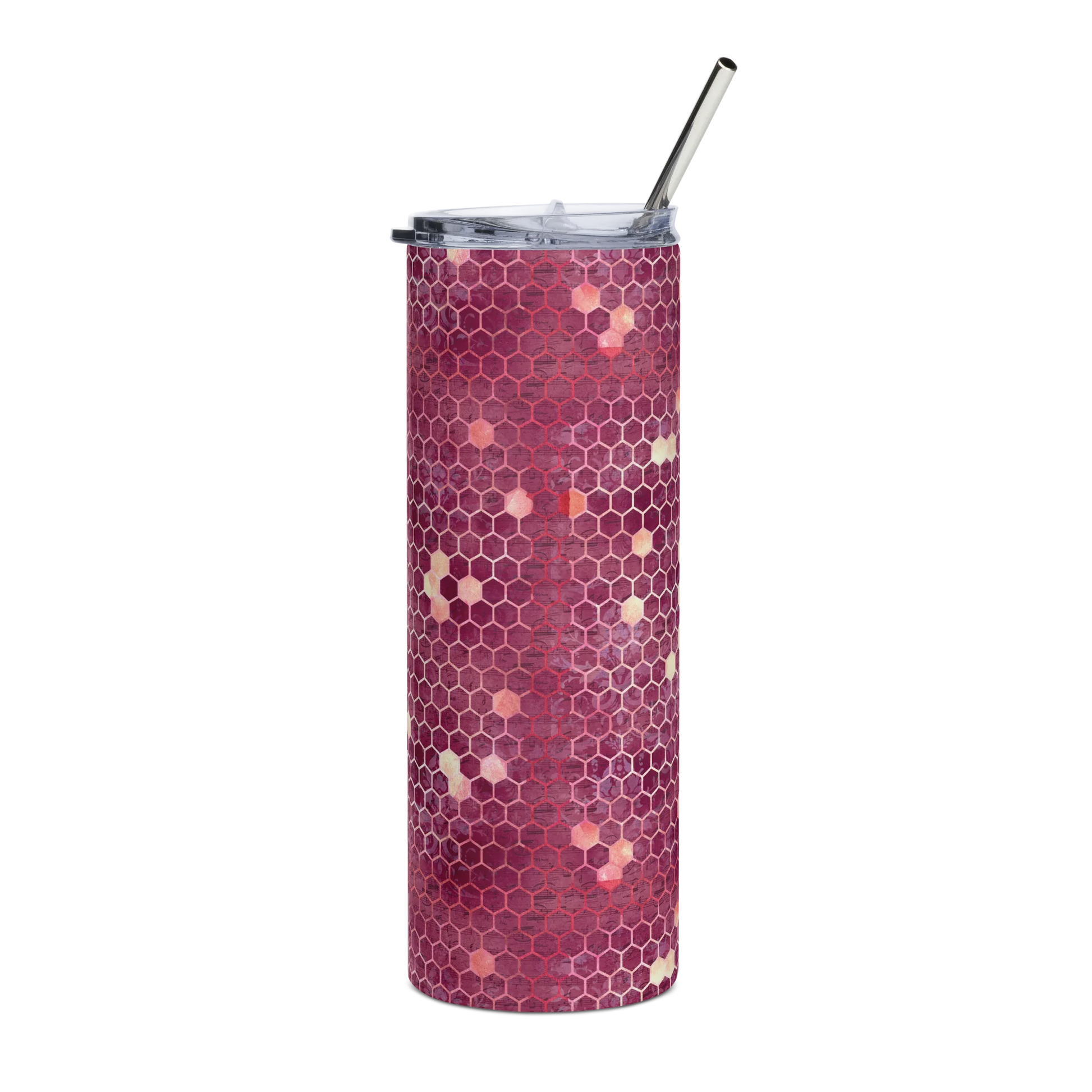 Sip elegantly with the Burgundy Gold Honeycombs Ornament Tumbler. Boasting a unique honeycomb pattern in rich burgundy and gold tones, this exquisite tumbler adds sophistication to your drinkware. Crafted with quality materials, it offers both design and functionality.