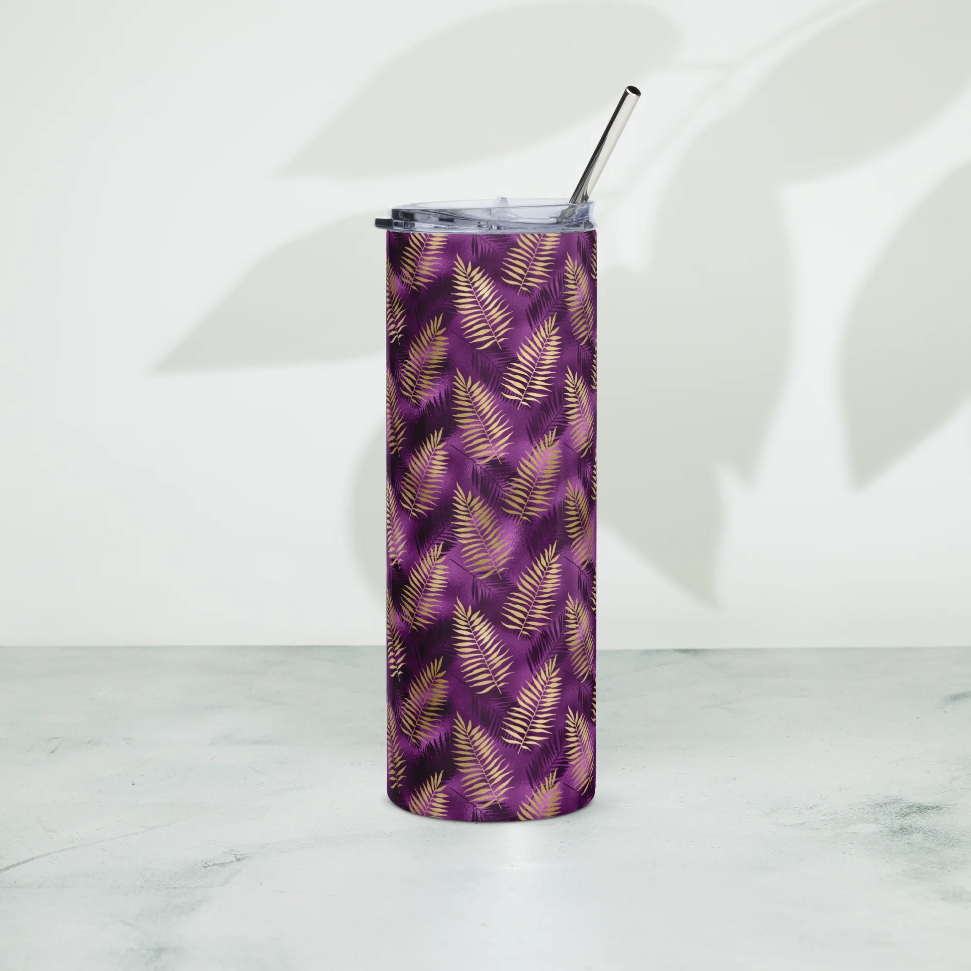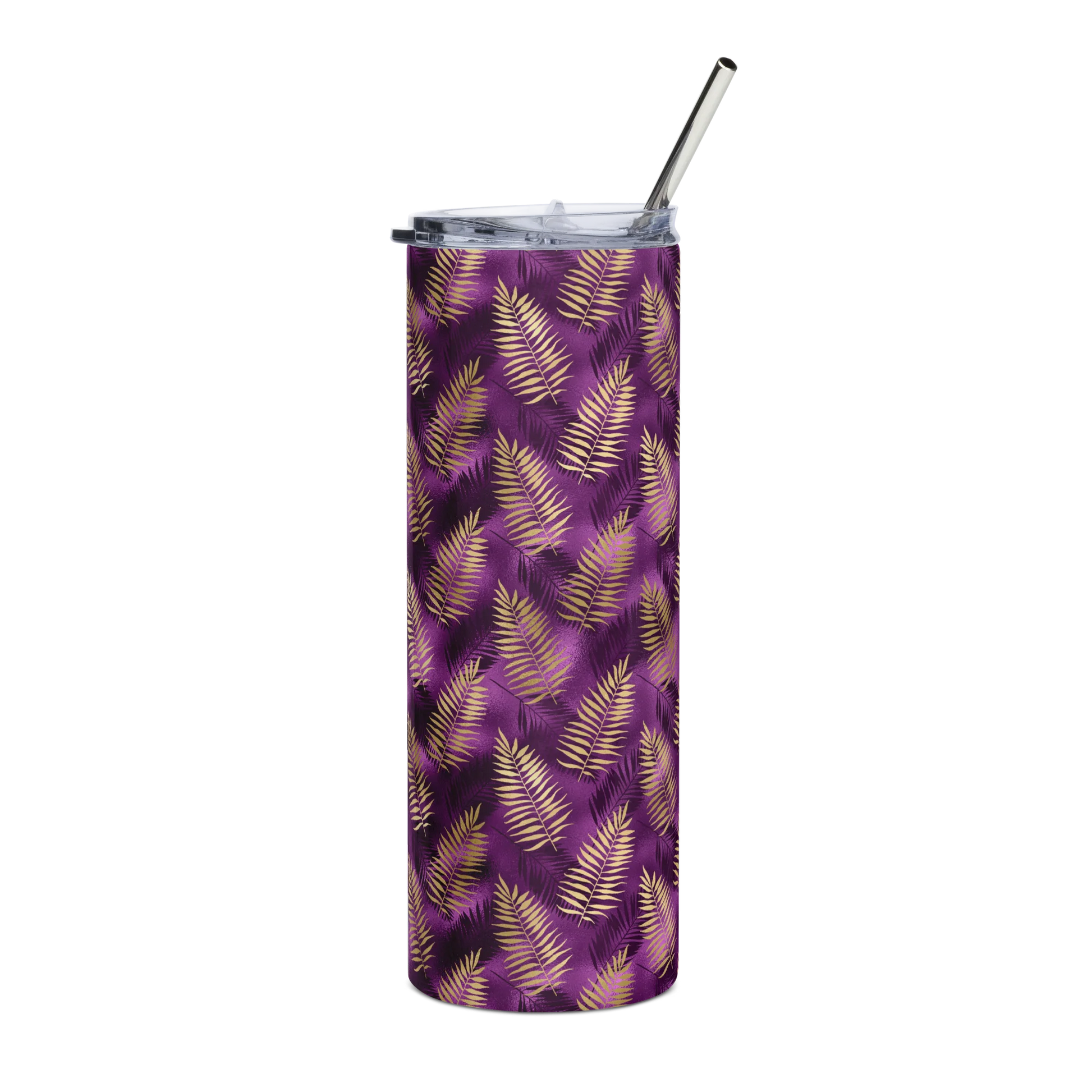 This Violet & Gold Tropical Magic Tumbler provides a touch of paradise with its vibrant colors and exotic pattern. Enjoy stylish, durable hydration with precision craftsmanship perfect for adding a splash of color to your day.