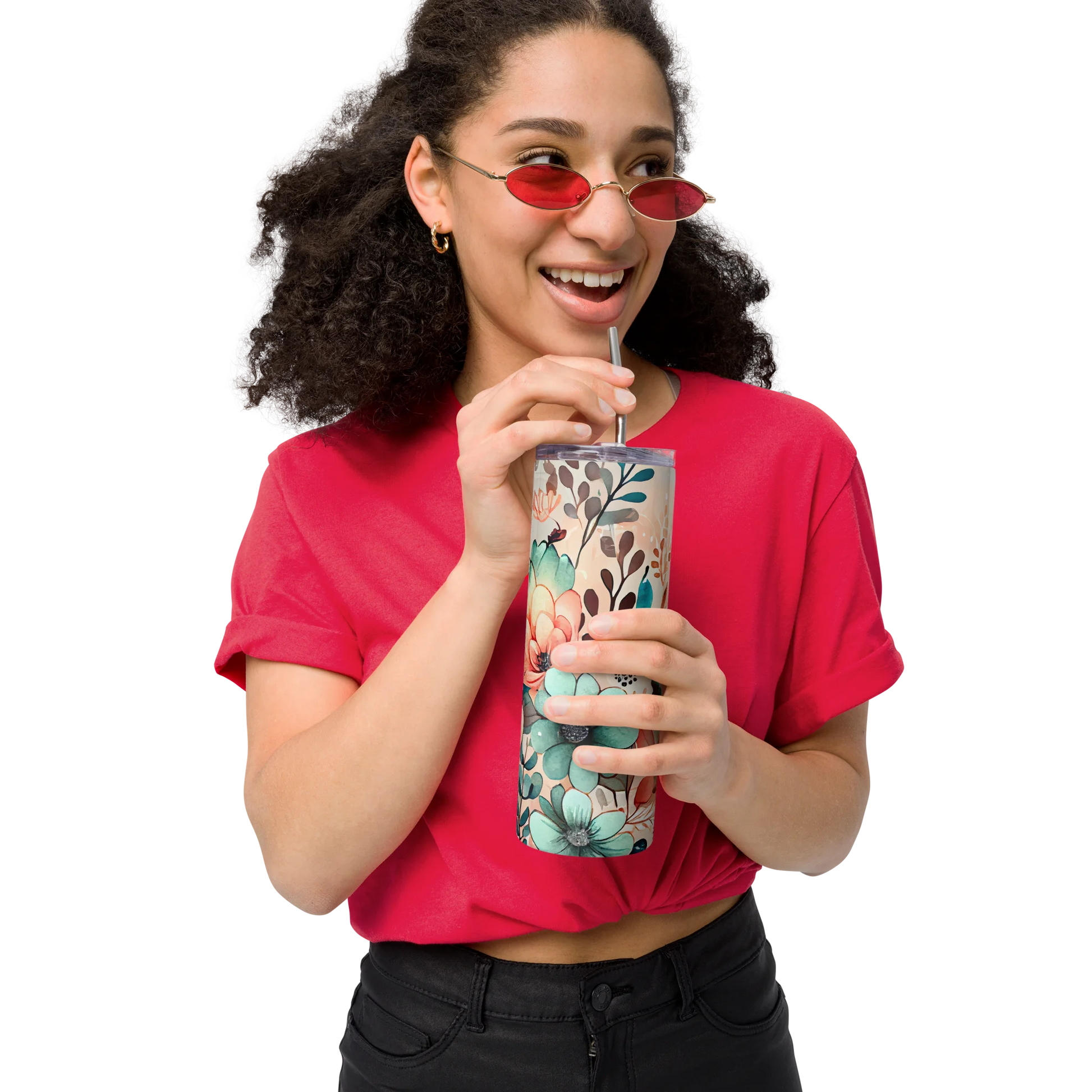 - Straw and lid included with the tumbler