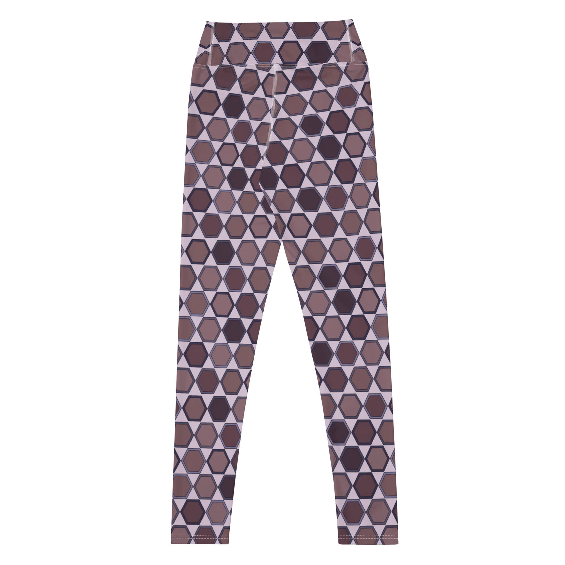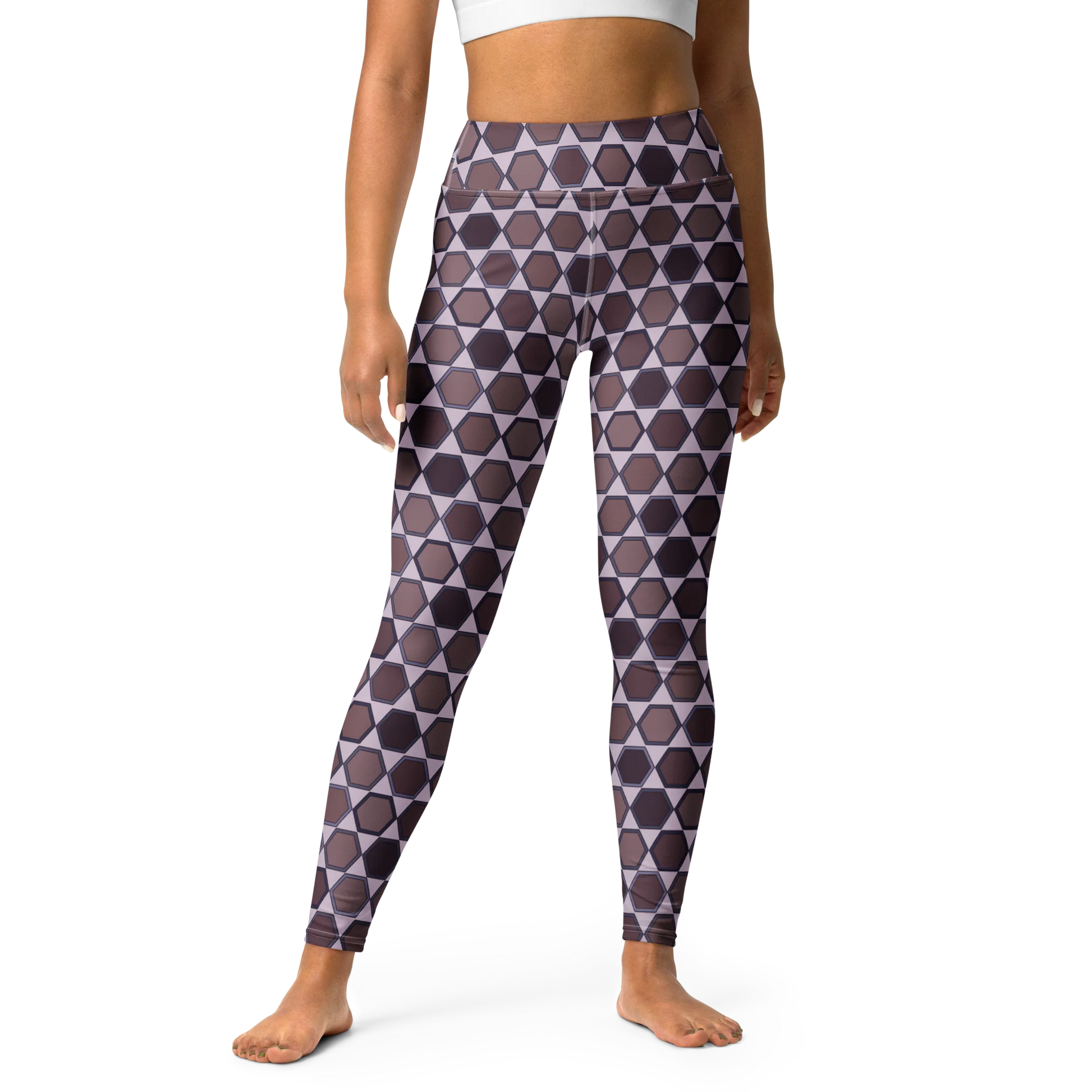 Add luxury to your yoga practice with the Wine Honeycombs Abstraction Yoga Leggings. This timeless design combines deep wine color and an abstract honeycomb pattern, crafted for precision and style. Enjoy all-day comfort with a perfect balance of functionality and style. Get ready to elevate your workouts in style.