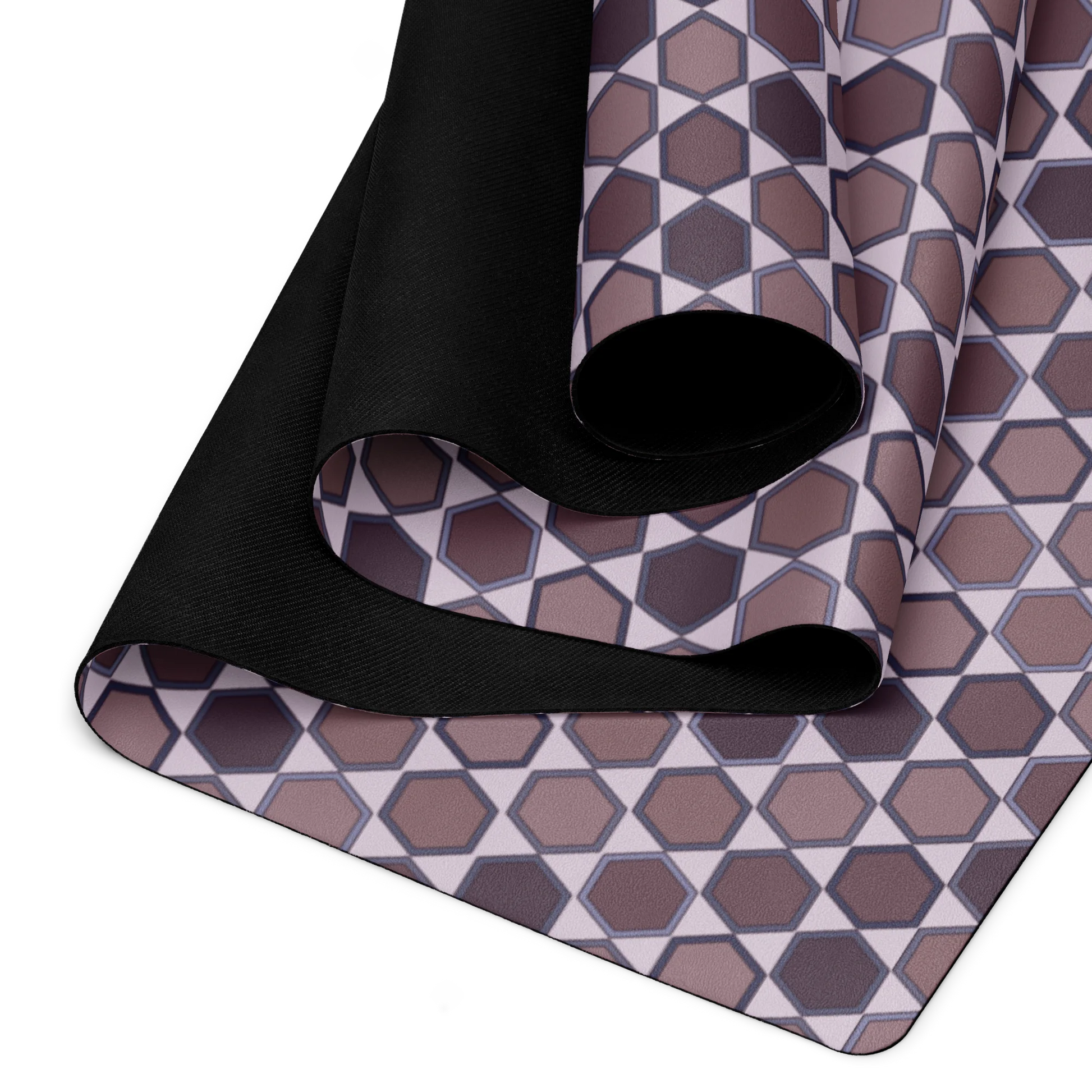 Enhance your yoga practice with the Wine Honeycombs Abstraction Yoga Mat. Its deep wine color and abstract honeycomb pattern add a touch of sophistication to your sacred space. Crafted with precision, it offers both style and functionality, providing a supportive foundation for your practice. Elevate your yoga experience with this exquisite mat.