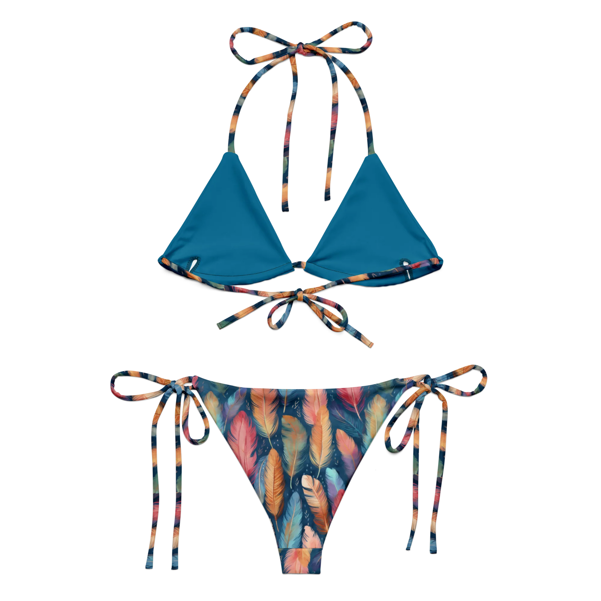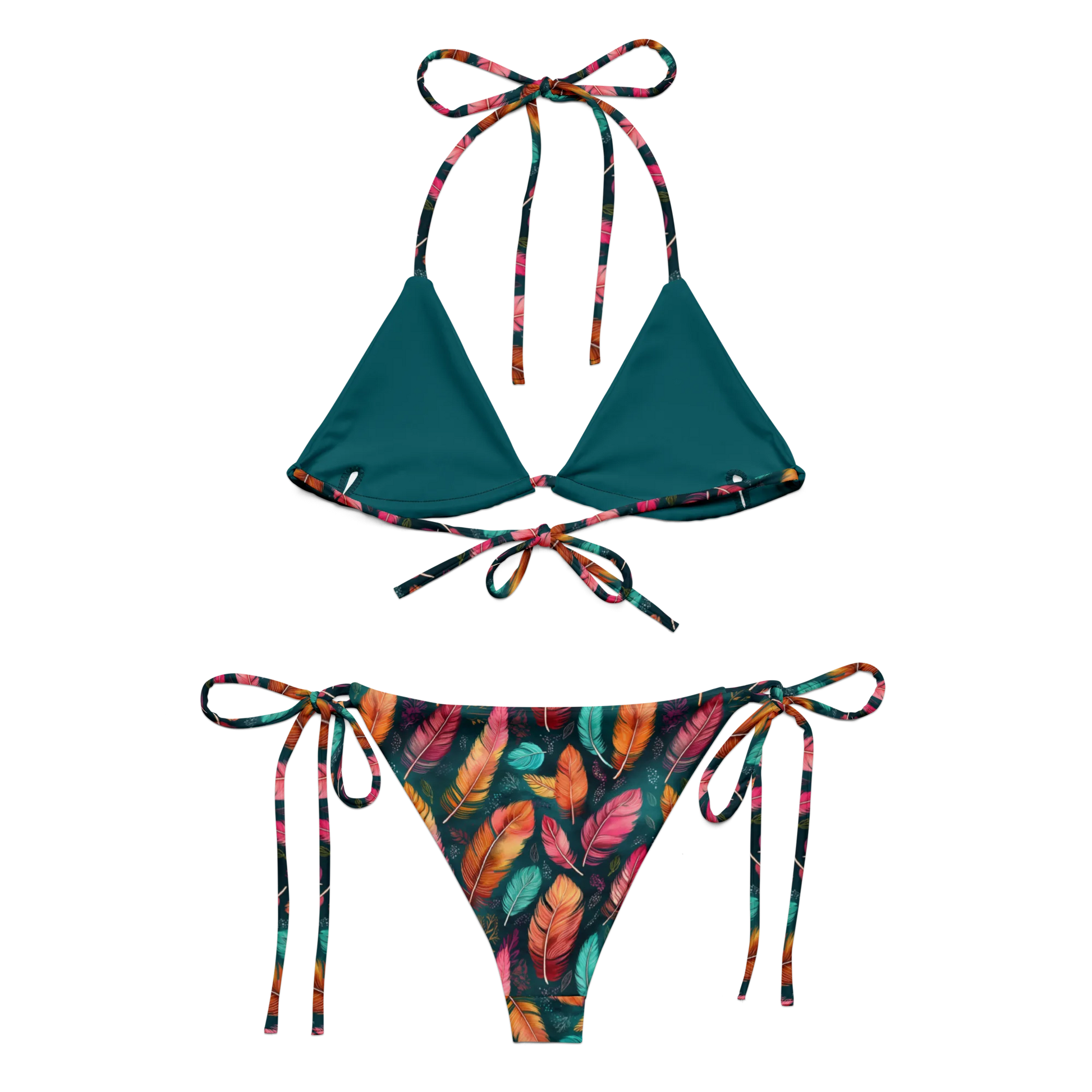 Elevate your beach style with the Wonderful Feathers Recycled String Bikini. Its graceful feather pattern exudes sophistication and timelessness. Made from recycled materials, this bikini is not only stylish but also sustainable. Stand out on the shore with the eco-friendly and elegant Wonderful Feathers Recycled String Bikini.