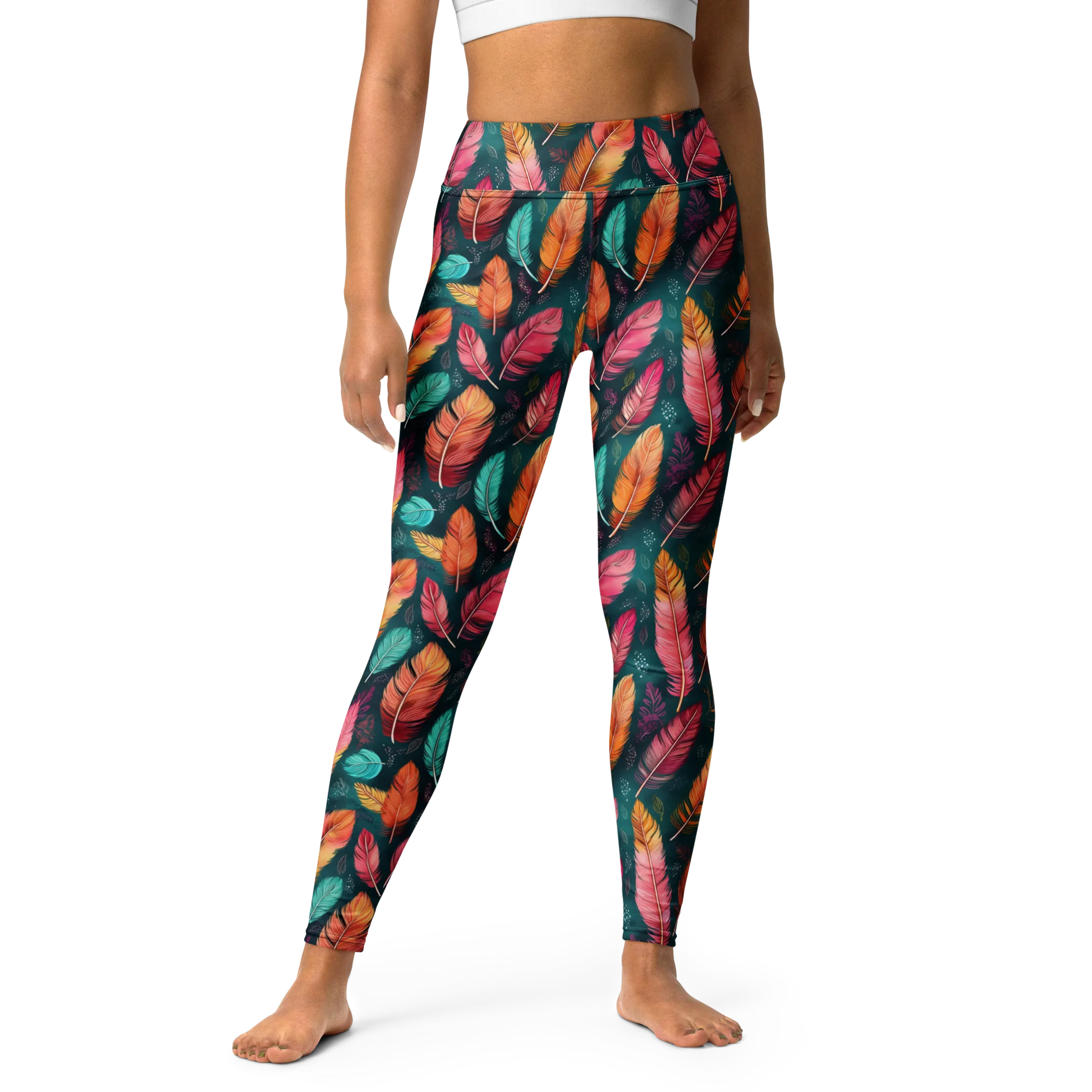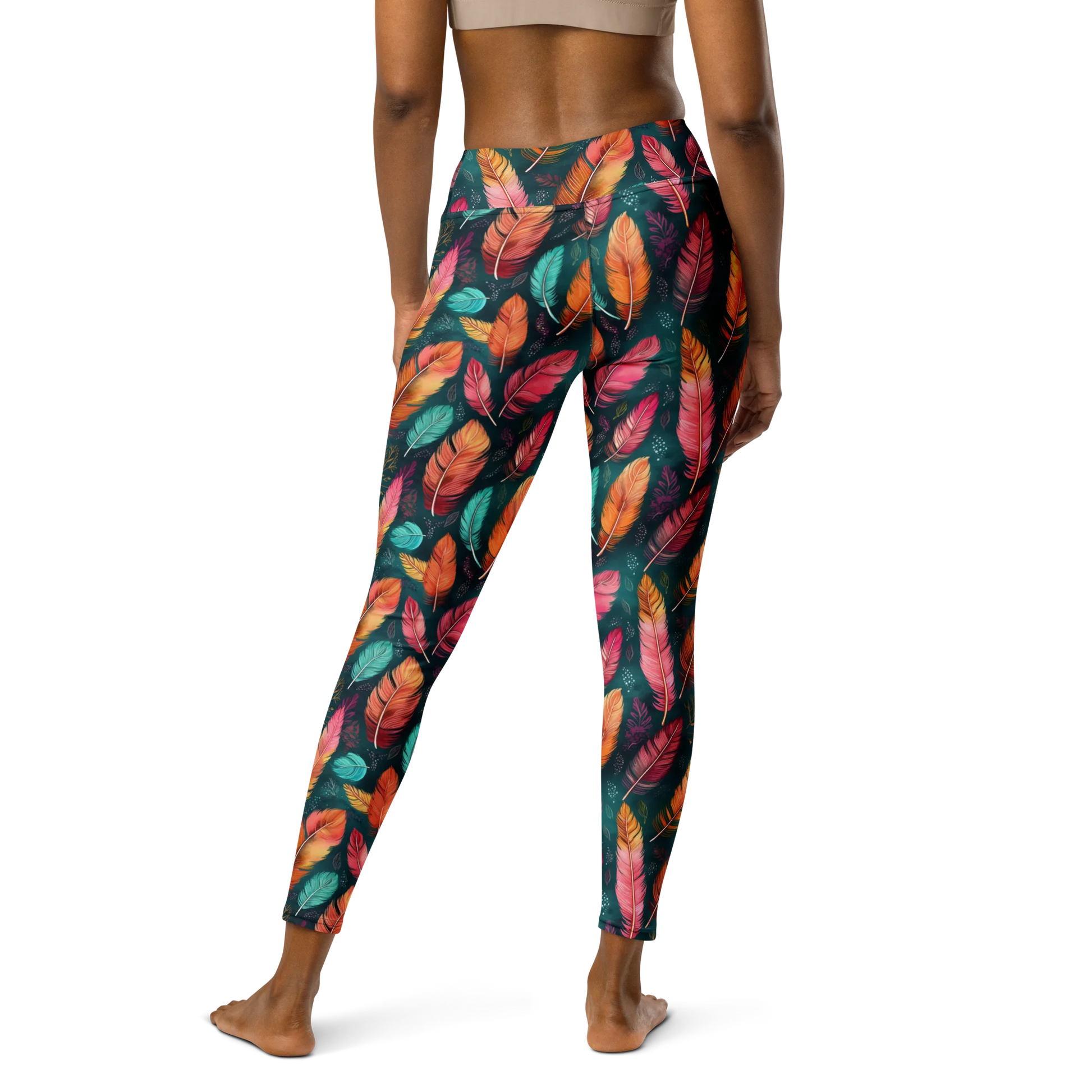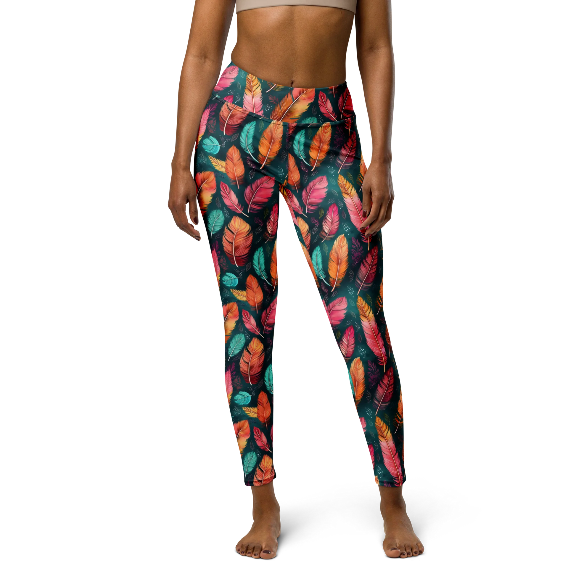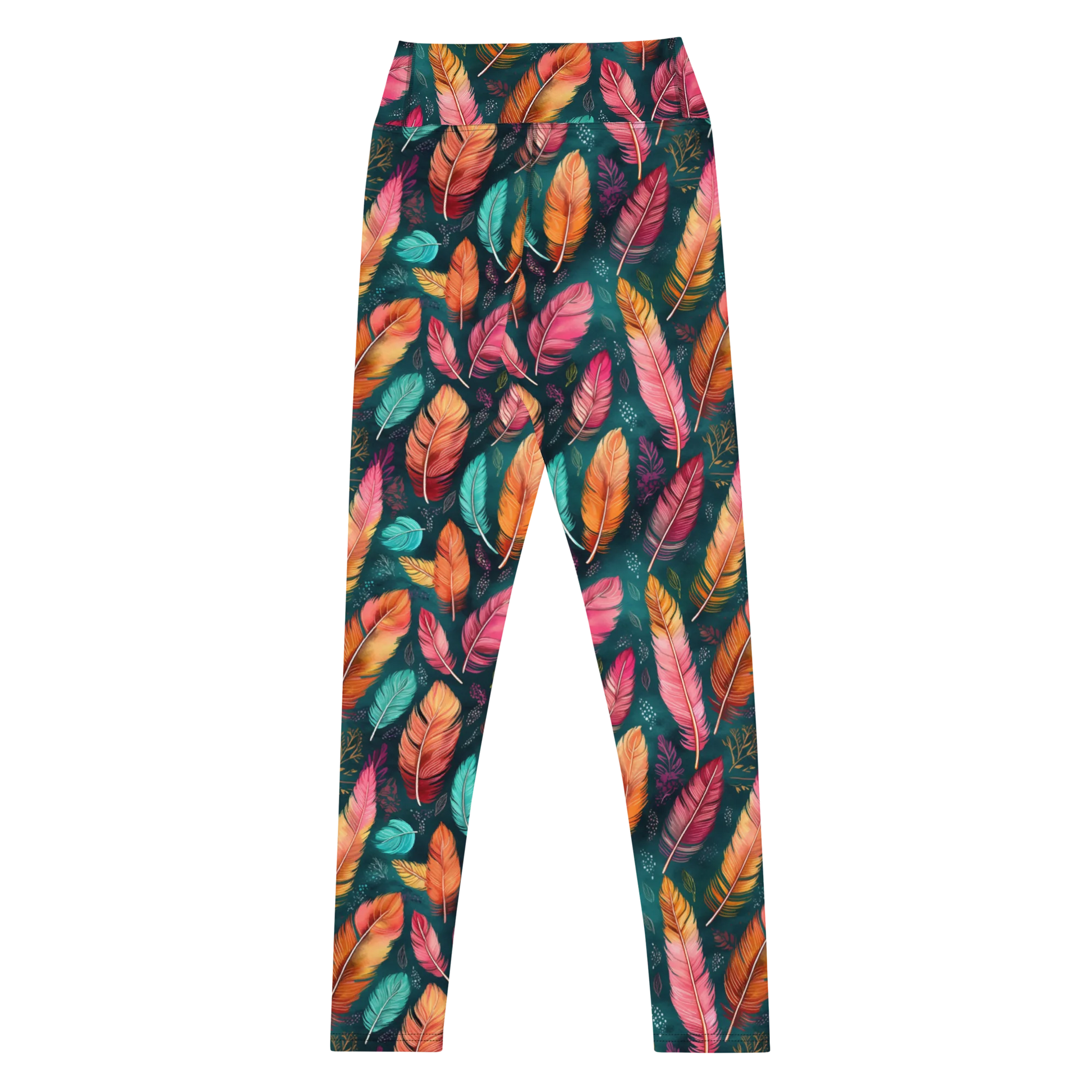 Experience the elegance of the Wonderful Feathers Yoga Leggings. These patterned leggings feature an exquisite feather design for a timeless look. Crafted with flexibility in mind, the leggings offer unparalleled comfort so you can move through yoga poses smoothly. Showcase your appreciation for sophistication with these stylish leggings.