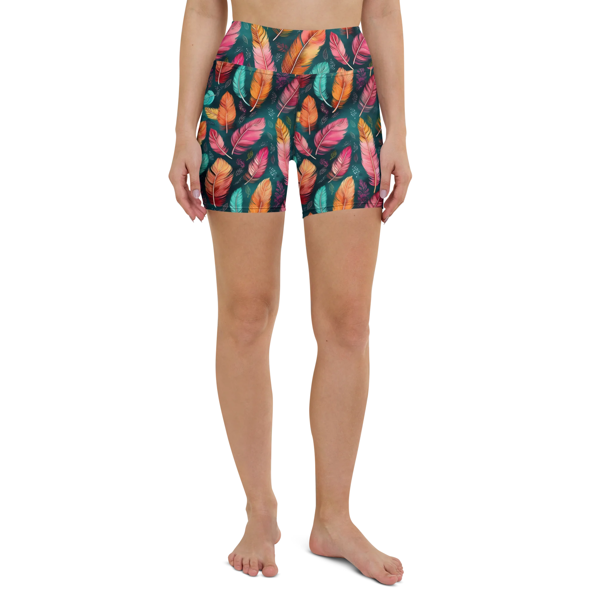 Experience elegance while practicing yoga with the Wonderful Feathers Yoga Shorts. Featuring a graceful feather pattern, these shorts elevate your workout attire with a touch of luxury. Not only do they make a statement, but they also offer comfort and style for yoga enthusiasts seeking refined activewear.